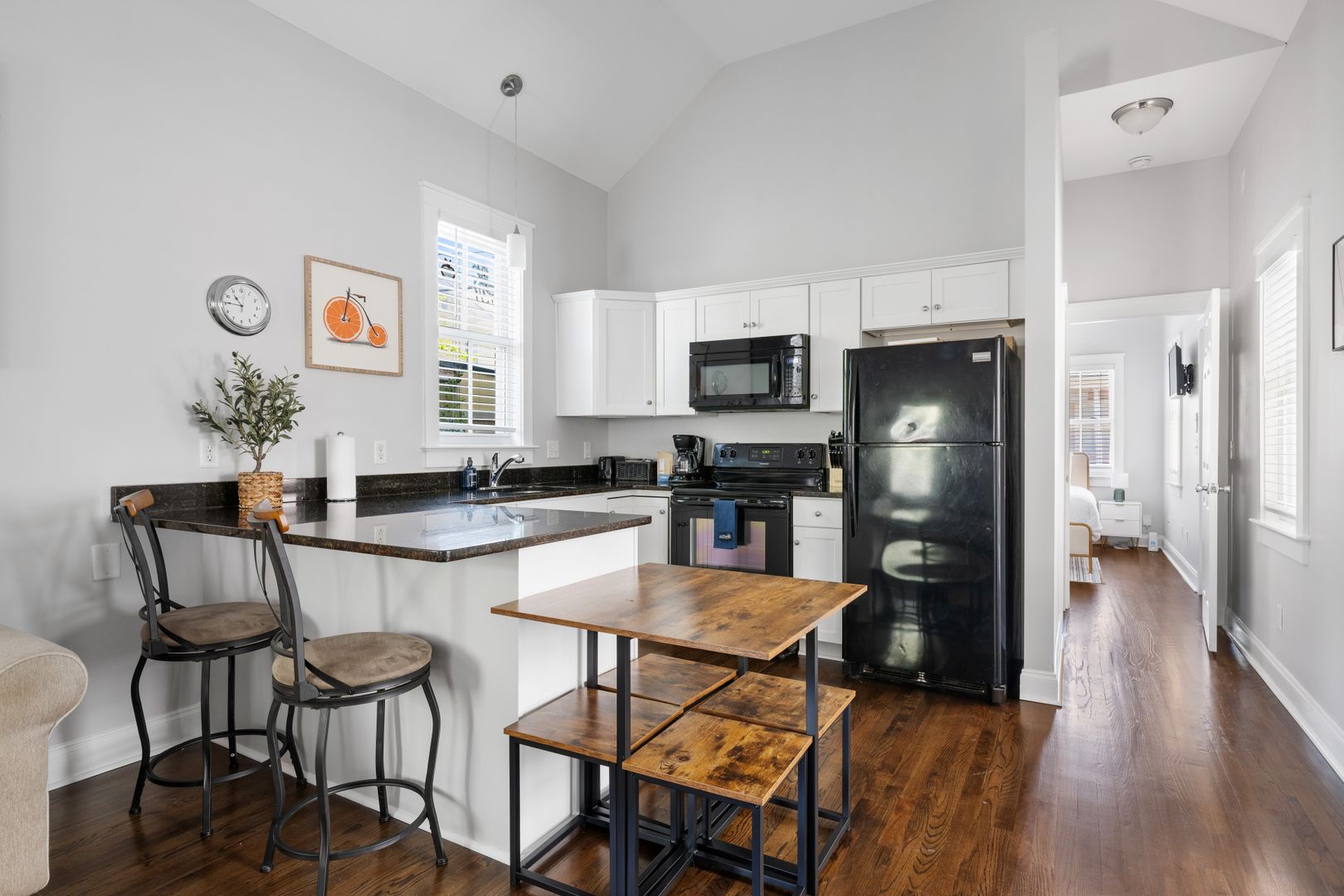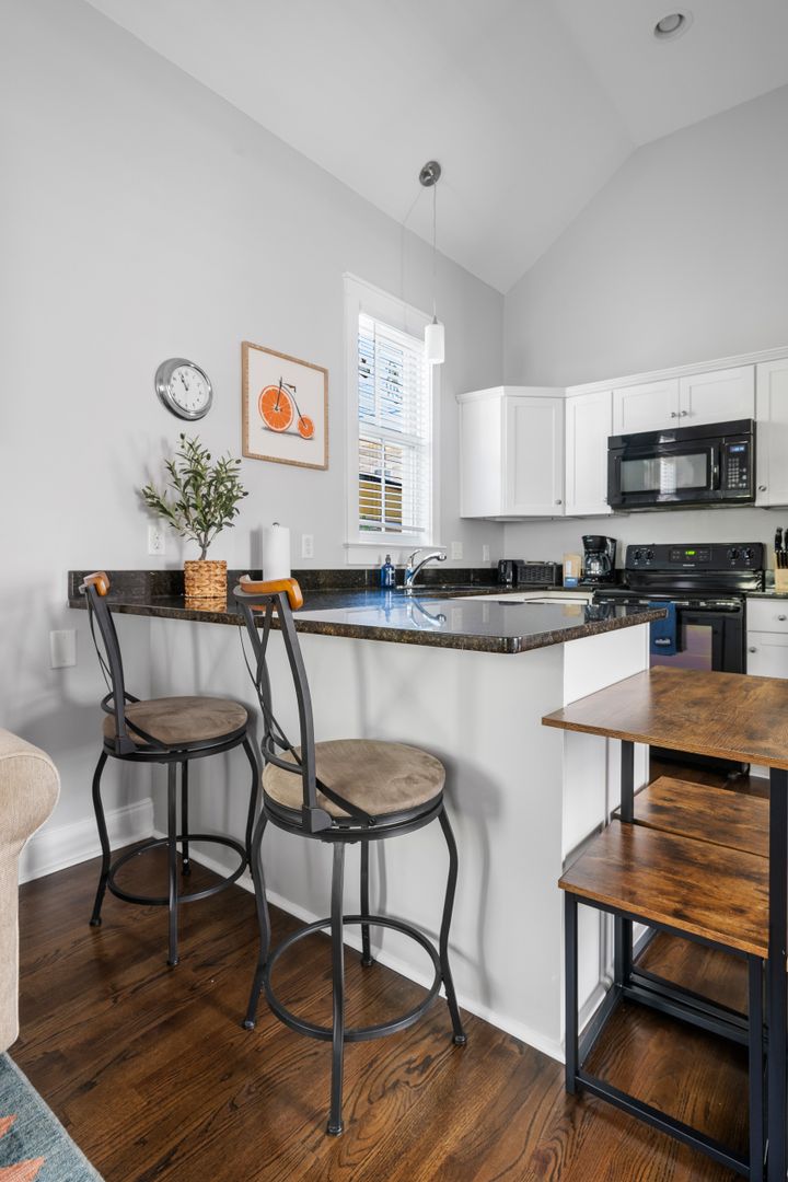 Welcome to The Morning Glory, your exclusive retreat in Downtown Charleston! This charming 2-bedroom, 2-bathroom single-family home is a hidden gem just steps away from the trendiest eateries like Leon's, Little Jack's Tavern, and Melfis. Step inside to discover an inviting open-concept kitchen and living area with soaring vaulted ceilings that exude spaciousness.