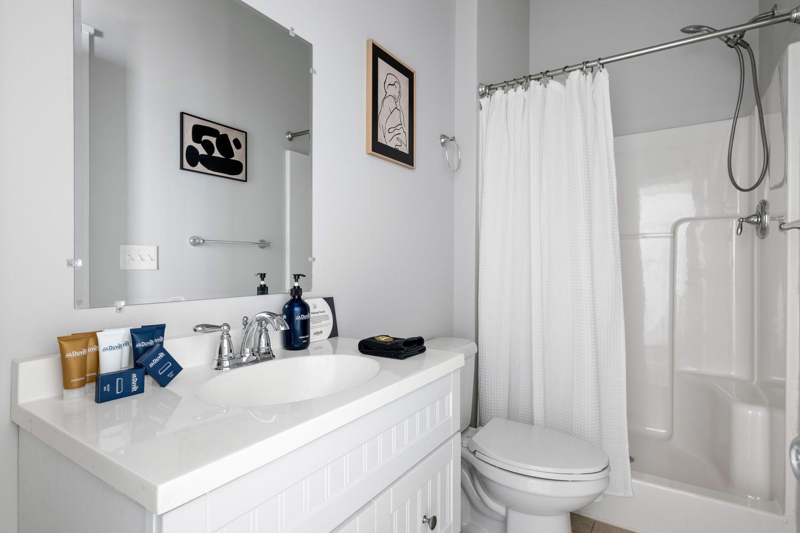 We provide enough of the following items to get you started: Hotel Quality Bath Amenities (shampoo, conditioner, hand soap, body wash, lotion), Mini Dish/Laundry Detergents & Paper Products (toilet paper, paper towels, tissues)