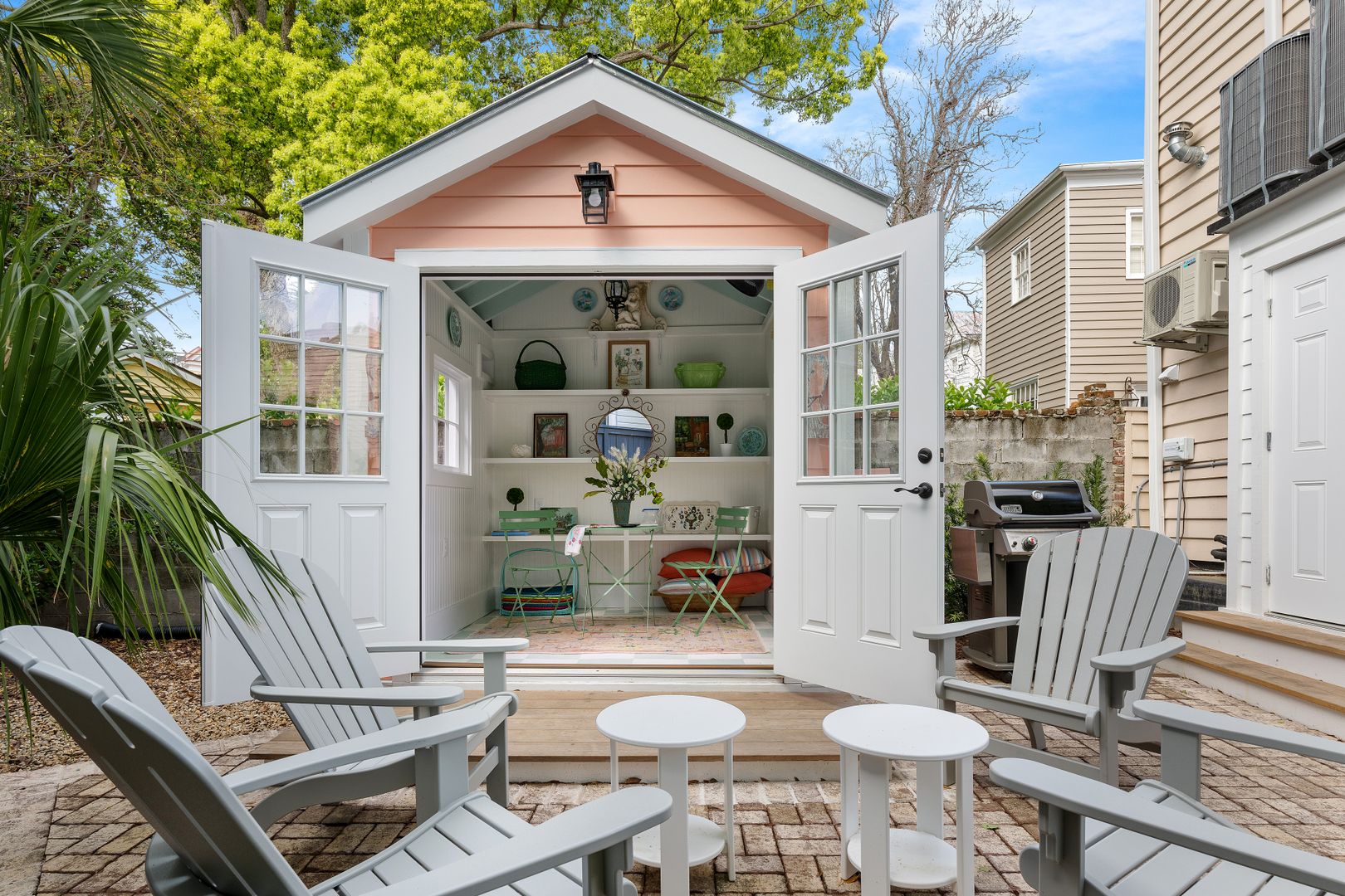 Indulge in outdoor living on the expansive front porch overlooking the stunning garden, complete with a grill and seating area. A charming structure in the backyard provides additional seating, perfect for outdoor entertaining. Please note this structure is not heated or cooled.