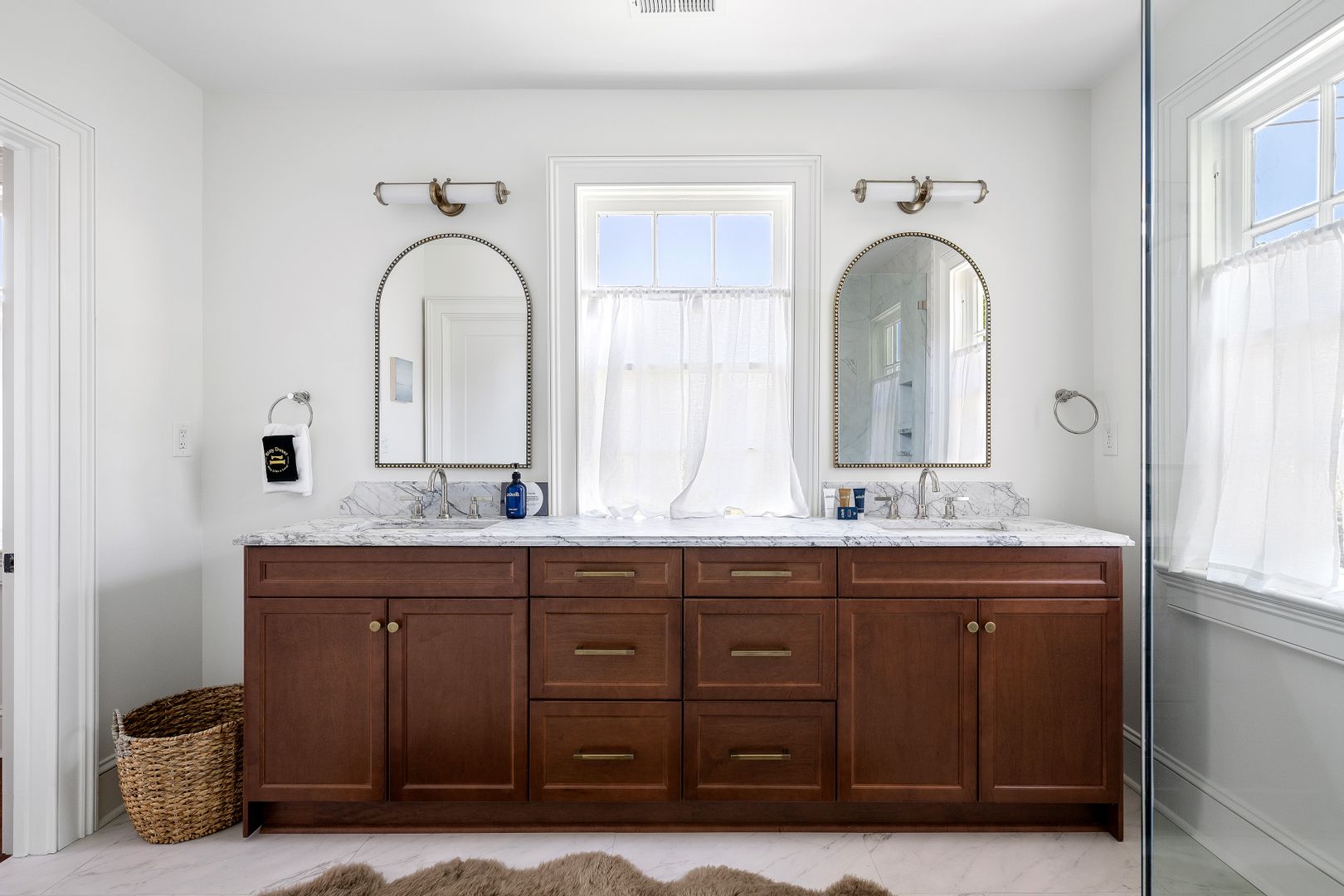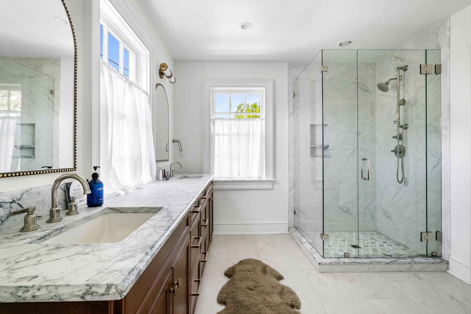 Ascending to the second floor, discover two serene bedrooms, each with its own luxurious en suite bathroom. The master suite beckons with a king-size bed, a generous walk-in closet, and a stunning en suite bathroom boasting a dual vanity and a spacious glass shower. The second bedroom offers a tranquil retreat with a queen-size bed and an en suite bathroom featuring a tub shower. An additional separate office space and a washer/dryer add to the convenience of this floor.