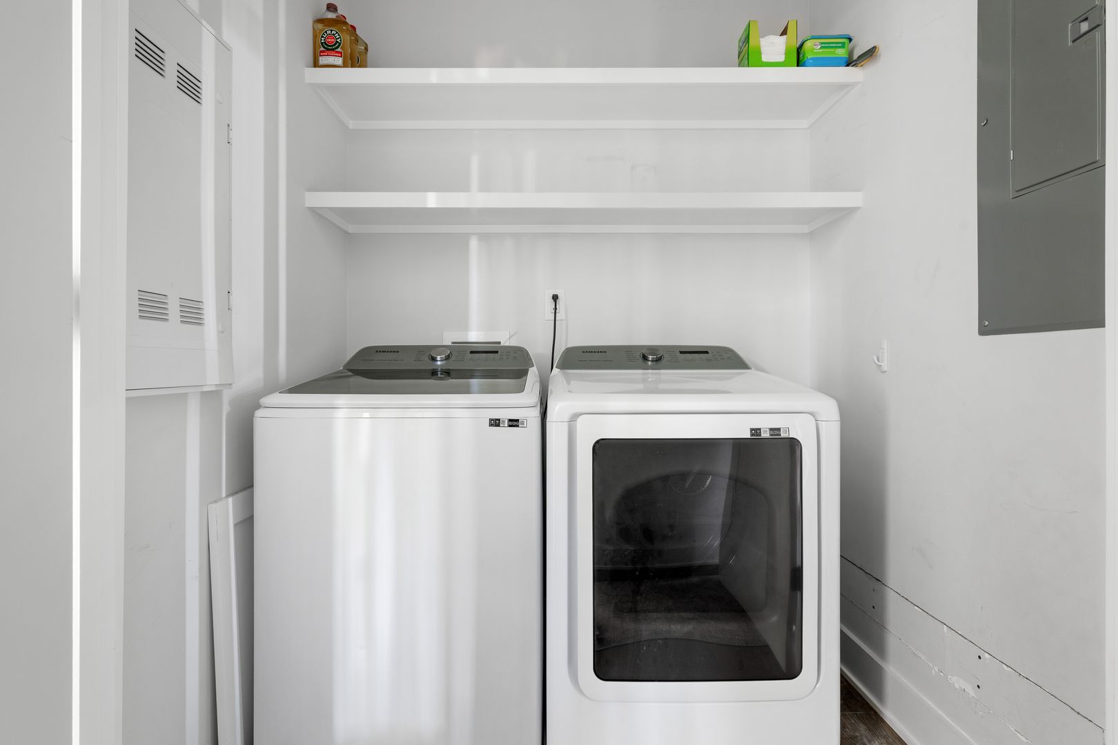 We provide enough of the following items to get you started: Hotel Quality Bath Amenities (shampoo, conditioner, hand soap, body wash, lotion), Mini Dish/Laundry Detergents & Paper Products (toilet paper, paper towels, tissues)