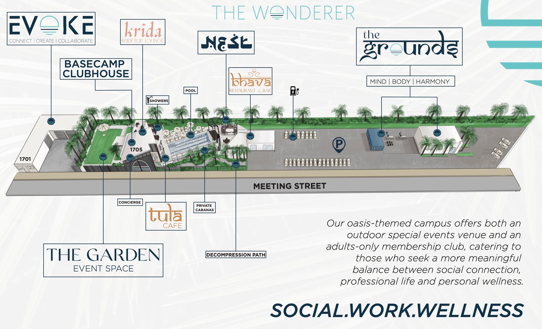 All guests staying with Duvet Homes have been granted access to The Wonderer Charleston.This 2-acre private membership club nestled in downtown Charleston is a modern oasis offering resort-style amenities and a Bali-Tulum-inspired atmosphere unparalleled on the peninsula. The property includes a swimming pool, onsite eateries for breakfast, lunch, dinner, trendy cocktails, and of course poolside cabanas! It also includes an indoor gym and