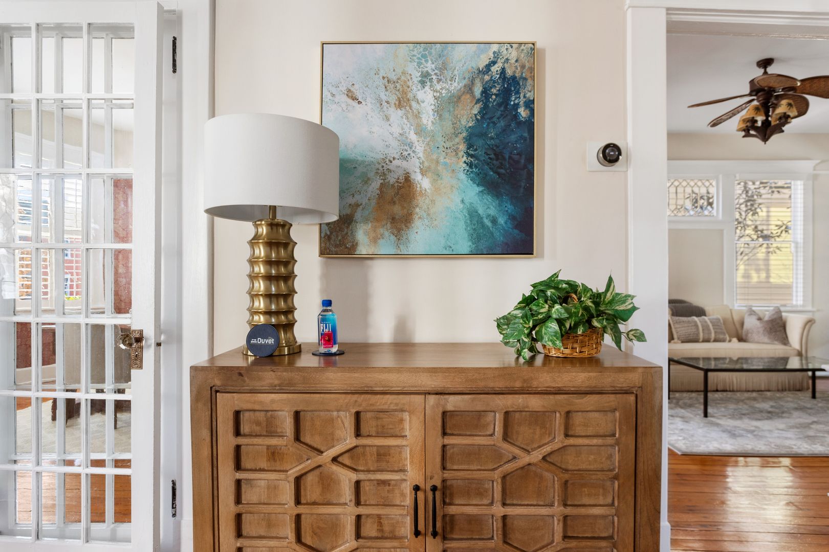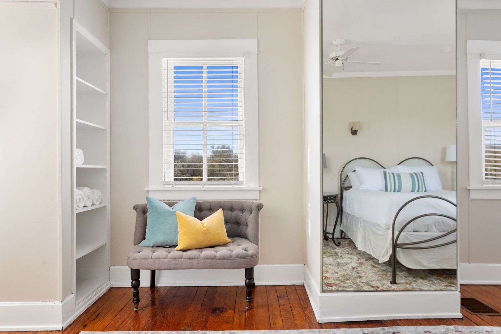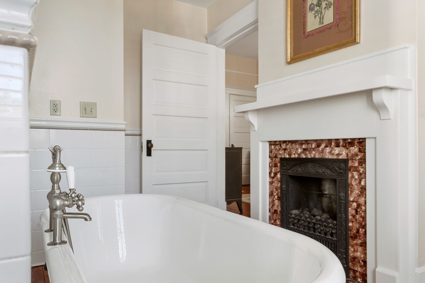The top floor of the house includes two large bedrooms, and a bath with an original pedestal tub/shower. Each bedroom has a comfortable queen size bed. In one bedroom you will find a large desk and comfortable chair. This bedroom would double as the perfect home office!