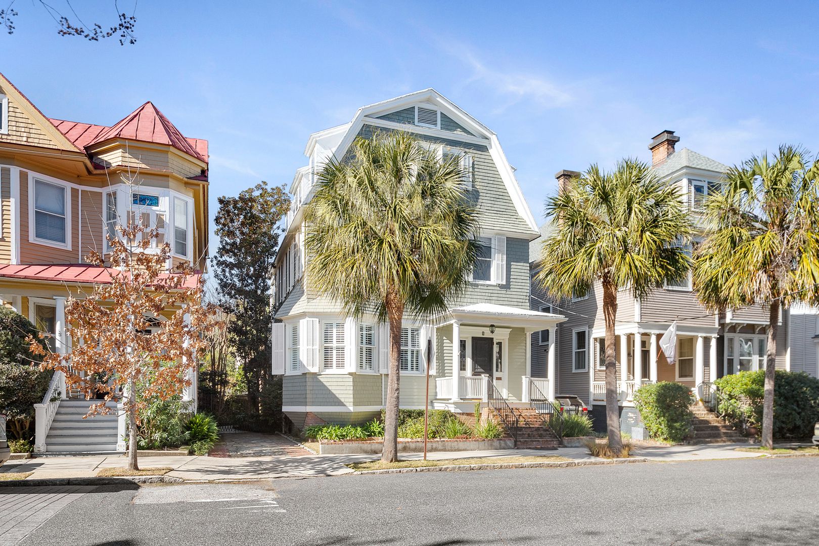 Colonial Street , located south of Broad Street and nestled between historic Tradd Street and beautiful Colonial Lake, is a quiet street just steps from Colonial Lake, Moultrie Playground, and the newly renovated battery on the Ashley River. The neighborhood was initially developed in the early 1920s by the owners of Anderson Lumber Company on land originally used for their lumber operations. The street features 19 homes with similar configurations. Each home has unique features and details, and most have a ''twin'' on the street. 5 Colonial's ''twin'' is 19 Colonial Street. Johnathan Poston's 1997 book ''The Buildings of Charleston: A Guide to the City's Architecture'' states ''The front facing gambrel roof at 19 Colonial Street nearly duplicates the roofline of the more sophisticated Shingle style dwelling at 5 Colonial Street with paired and triple windows, classical portico with Colonial Revival architrave..."