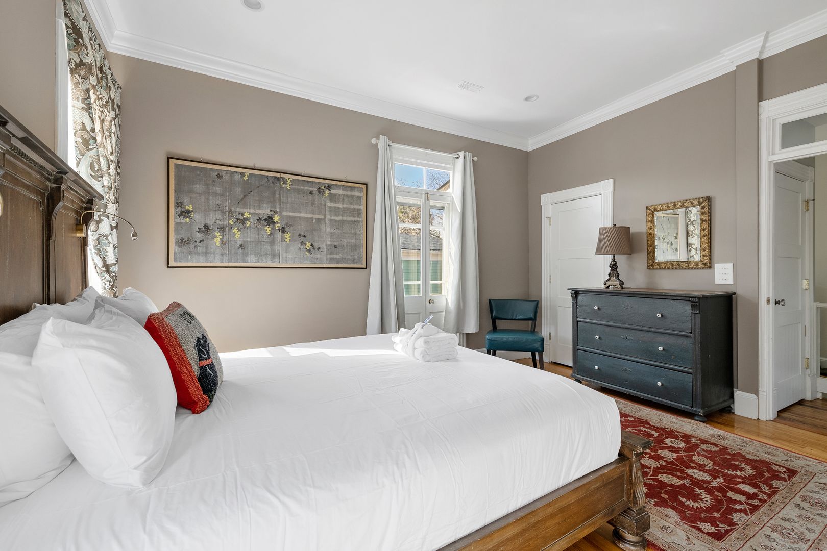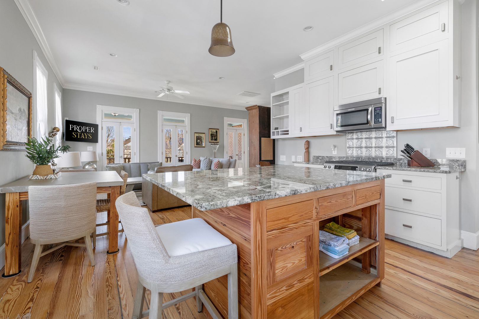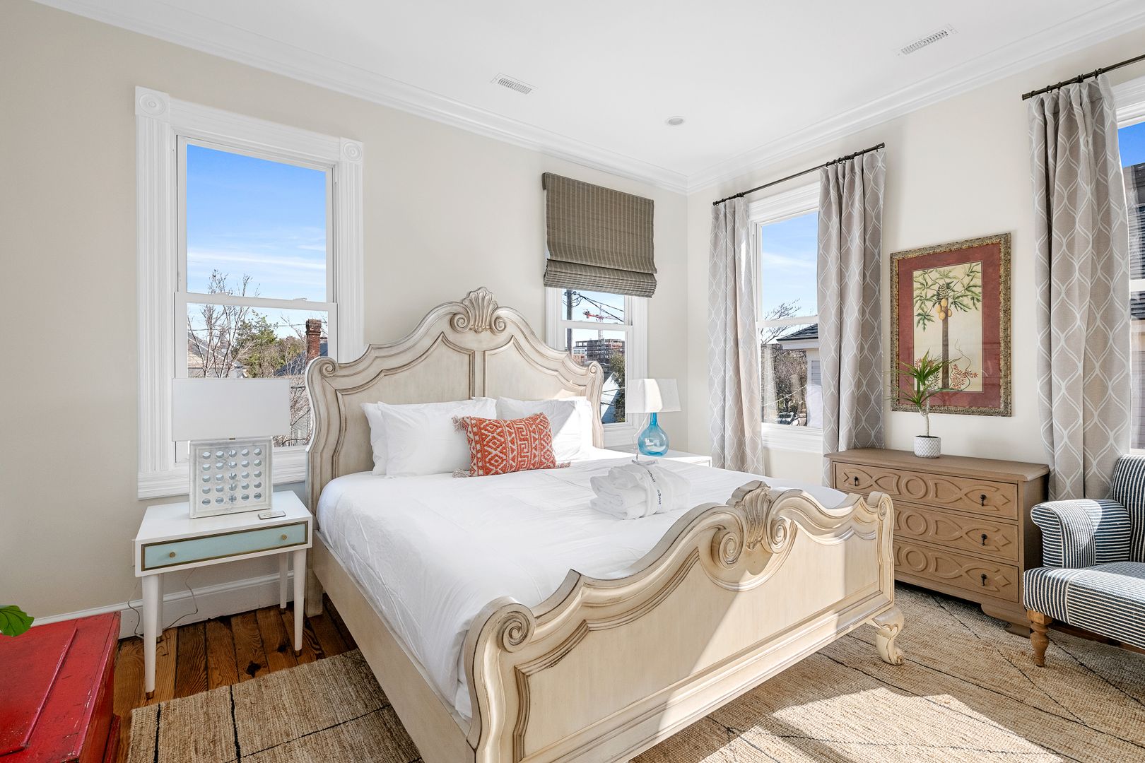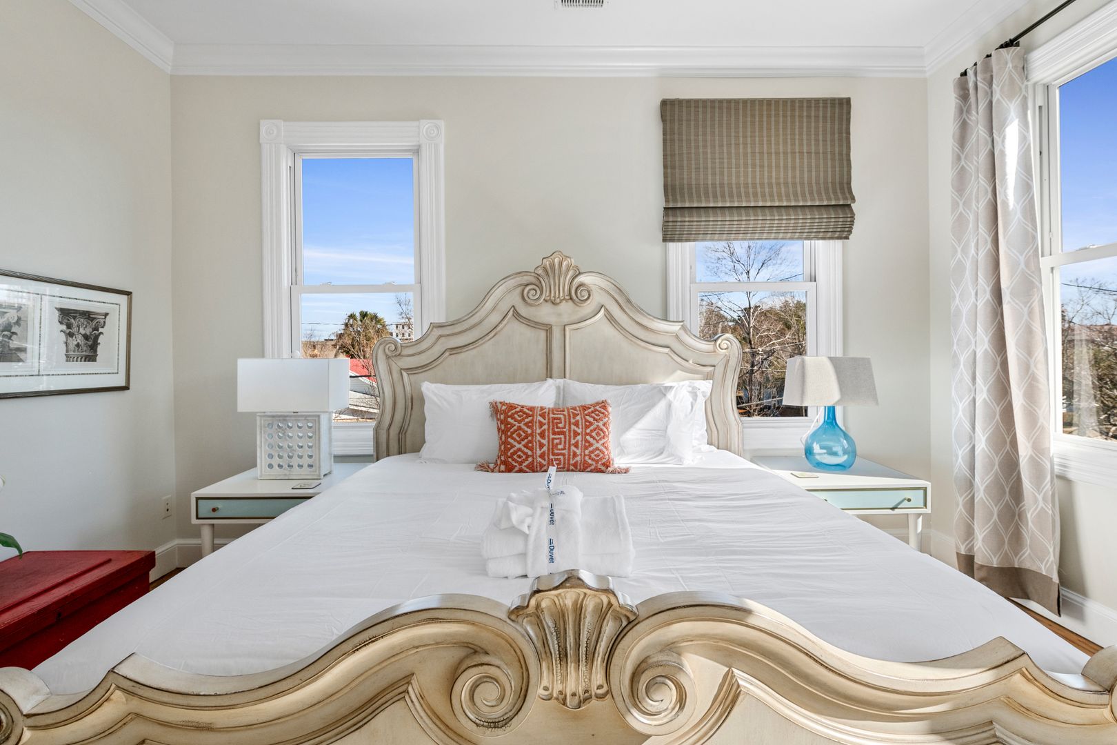Get the royal treatment with Fit For A King, Street! This luxurious 2 bedroom, 2 bathroom 30+ day rental is the perfect home away from home. Enjoy the beautiful hardwood floors, high ceilings, and natural light that create a warm and inviting atmosphere. Prepare delicious meals in the spacious kitchen featuring a large island crafted from the homes original heart of pine flooring, granite countertops, and plenty of cabinet and prep space. From the living room, access the private porch to overlook popular King Street. Relax in two comfortable bedrooms with king beds! Live like a King at Fit For A King, Street!
