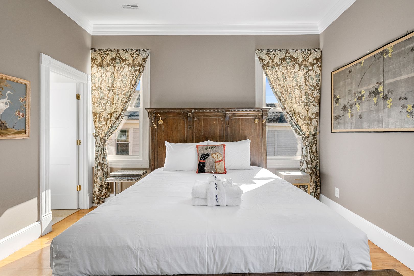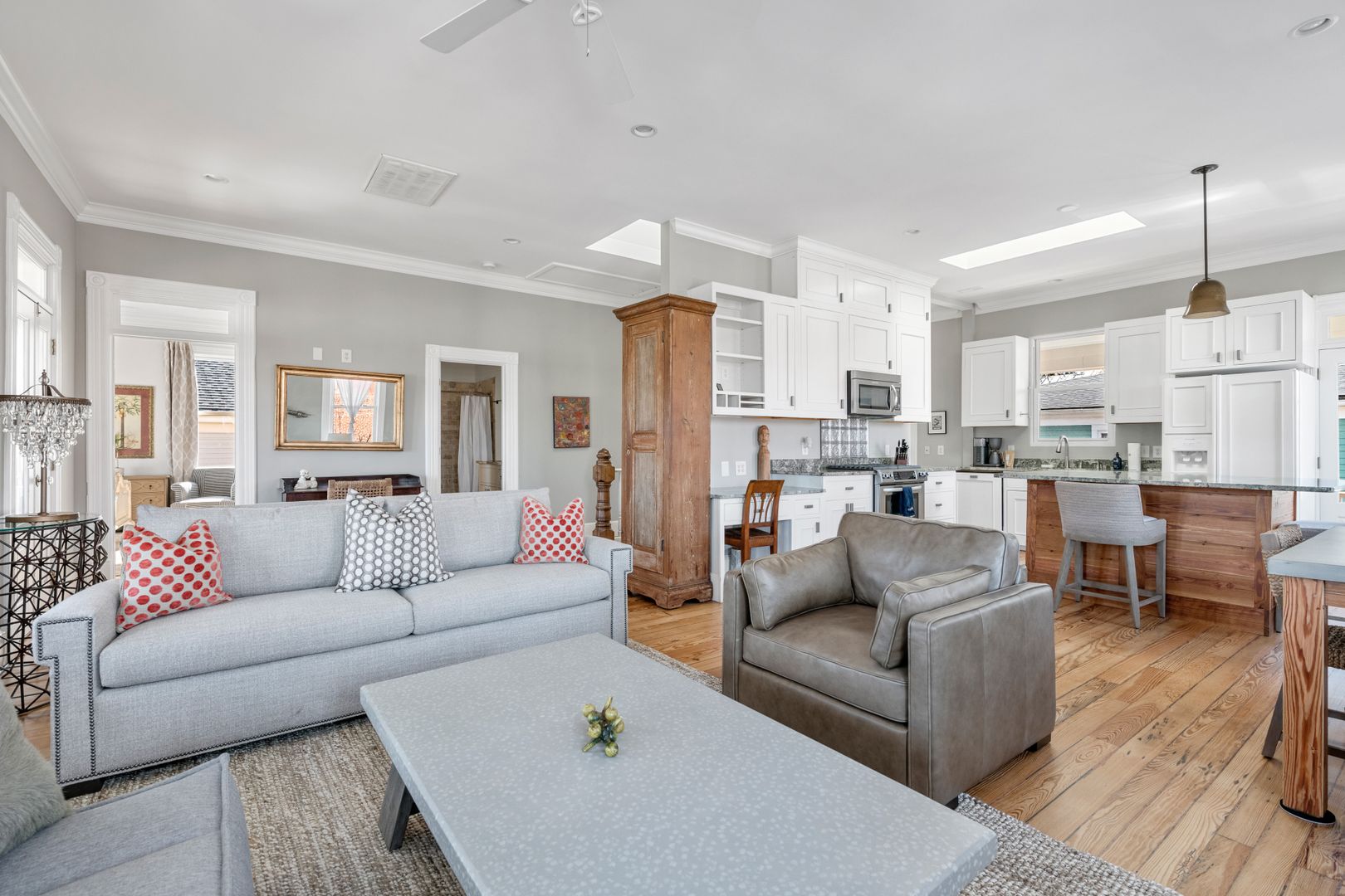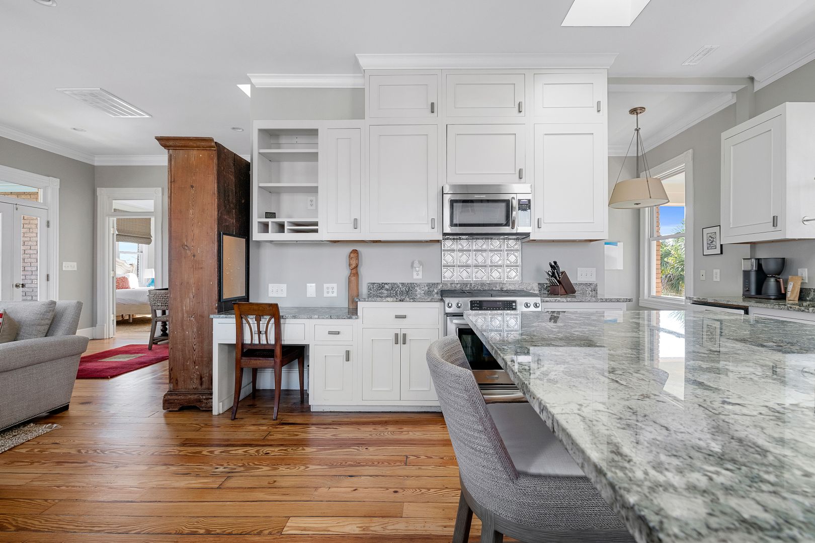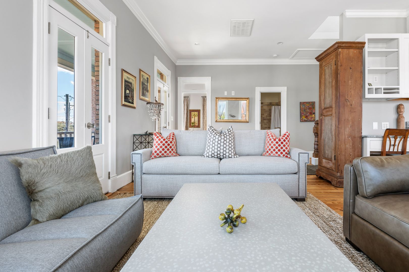Get the royal treatment with Fit For A King, Street! This luxurious 2 bedroom, 2 bathroom 30+ day rental is the perfect home away from home. Enjoy the beautiful hardwood floors, high ceilings, and natural light that create a warm and inviting atmosphere. Prepare delicious meals in the spacious kitchen featuring a large island crafted from the homes original heart of pine flooring, granite countertops, and plenty of cabinet and prep space. From the living room, access the private porch to overlook popular King Street. Relax in two comfortable bedrooms with king beds! Live like a King at Fit For A King, Street!