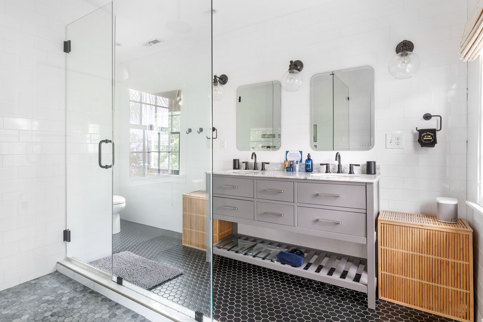 Upstairs, the primary suite is a serene escape, complete with a king-size bed, a spacious closet, and an en suite bathroom with dual sinks and a glass-enclosed shower. Two additional guest bedrooms, each with a queen-size bed, share a well-appointed hallway bathroom with a tub/shower combination. Step out onto the second-floor piazza to sip your morning coffee and take in the beautiful Charleston weather.