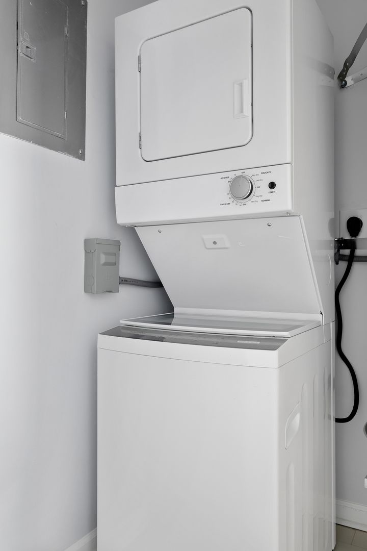For added convenience, the suite includes a full-size washer and dryer, making long-term stays even more comfortable. One off-street parking space is provided and conveniently located around the corner, offering easy access to your vehicle.