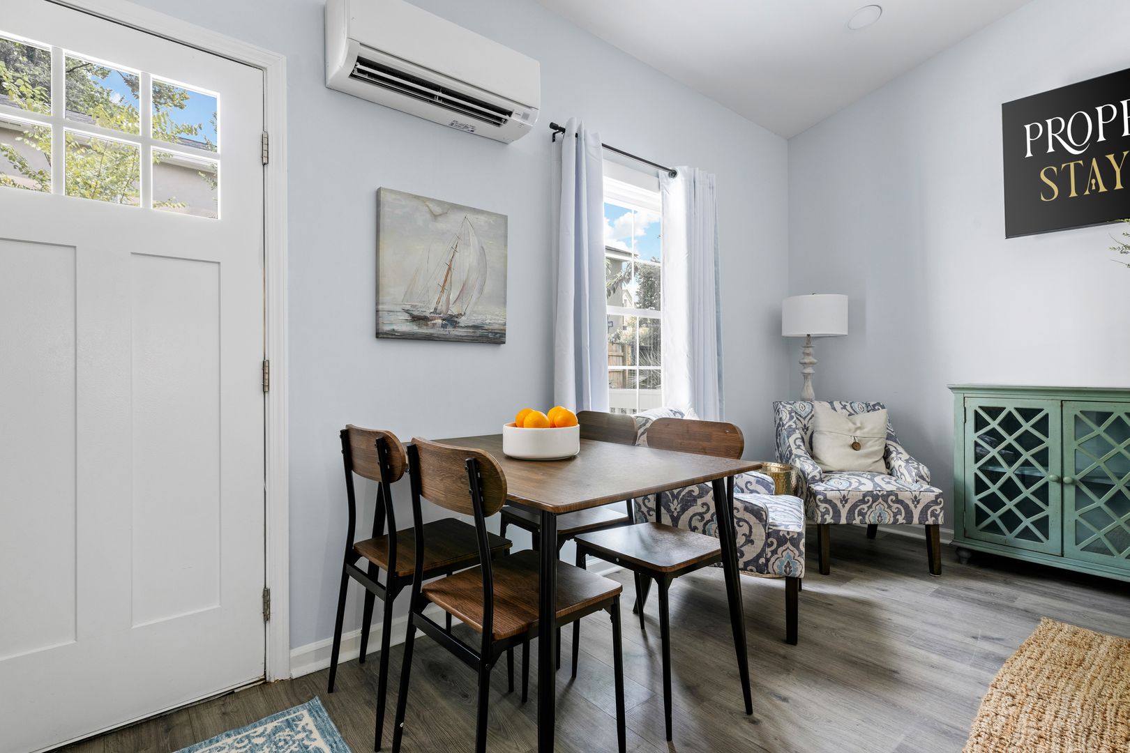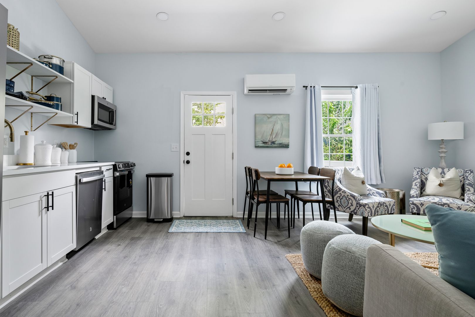 Welcome to the Haint Blue Suite, a recently renovated haven nestled in the heart of downtown Charleston. This first-floor, two-bedroom, one-bathroom apartment is the perfect choice for a 30+ day stay, offering comfort and convenience with a touch of southern charm.