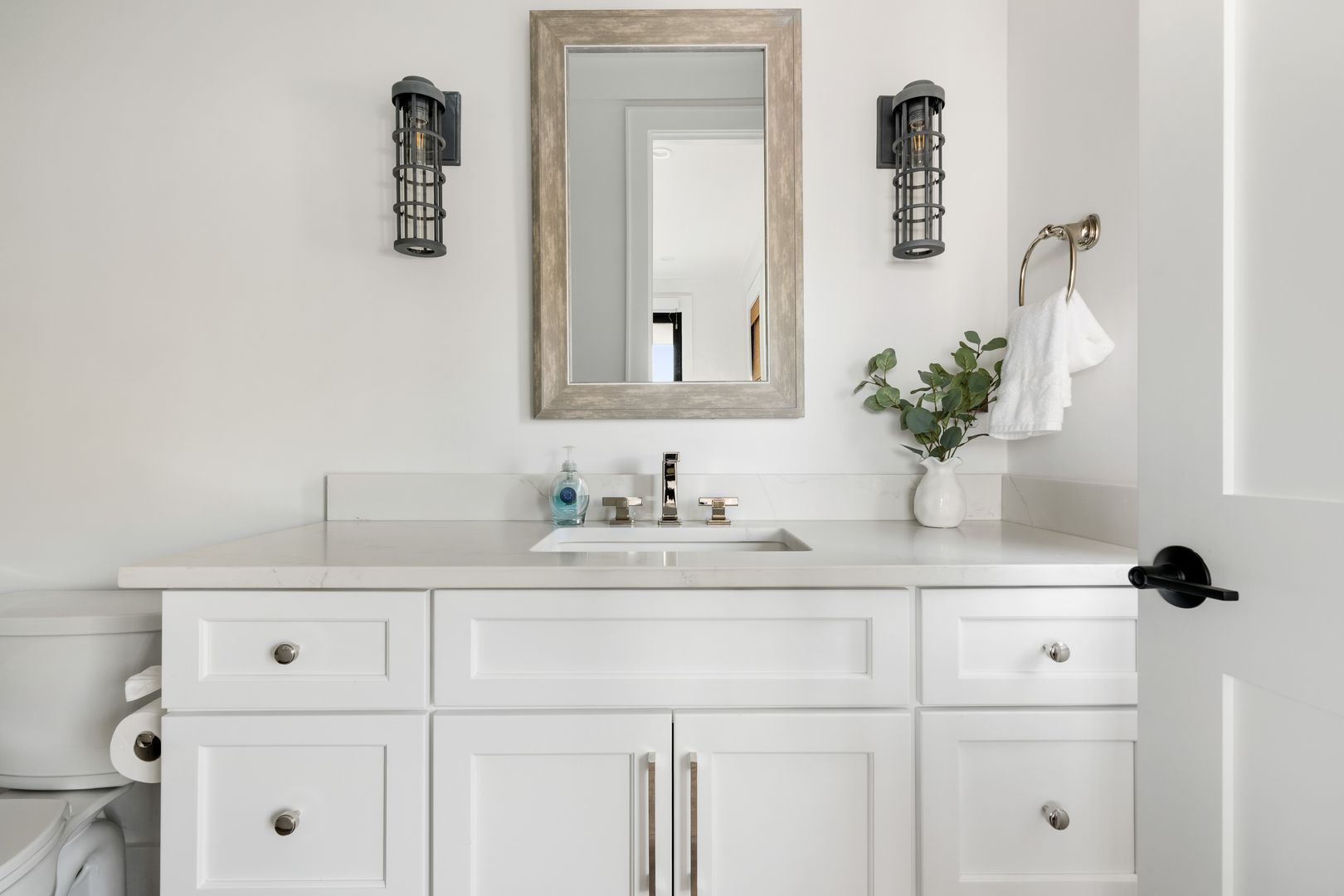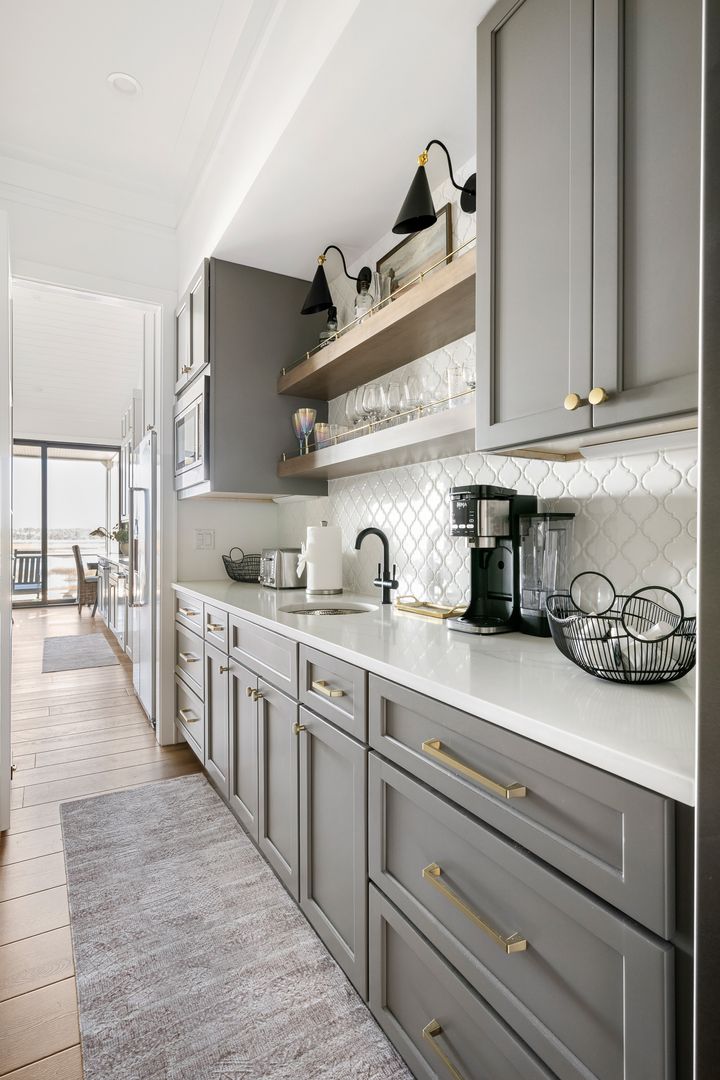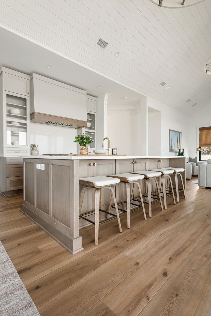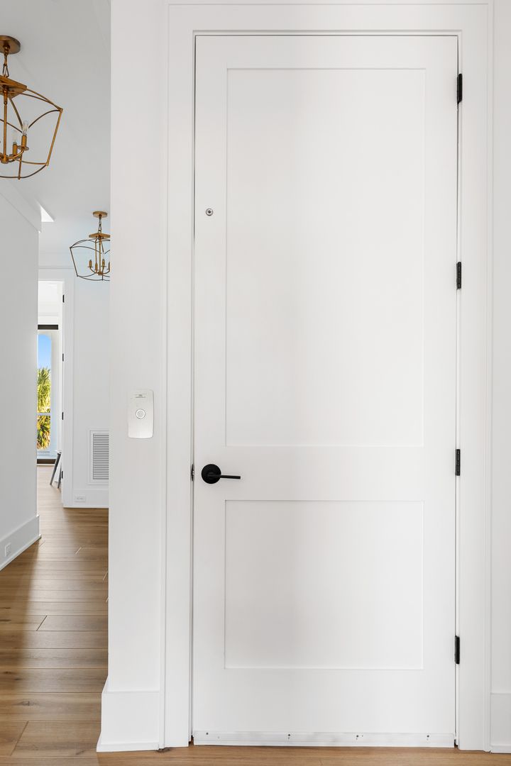 The kitchen is nothing short of a chef’s dream. A massive island provides seating for five and is complemented by abundant cabinetry and counter space throughout. High-end stainless steel appliances, two dishwashers, and a fully stocked setup with cooking essentials make hosting effortless. Just beyond the kitchen, a spacious butler’s pantry offers an additional refrigerator, extensive storage, extra countertop space, a washer and dryer, and a storage closet. This level also includes a half bathroom and a second laundry room for added convenience. Step outside onto the porch to enjoy more seating and direct access to the rooftop deck. From multiple vantage points throughout the home, guests can enjoy unique and ever-changing views, including glimpses of the iconic Folly Beach Lighthouse and sweeping perspectives of the Arthur Ravenel Jr. Bridge from the rooftop deck.