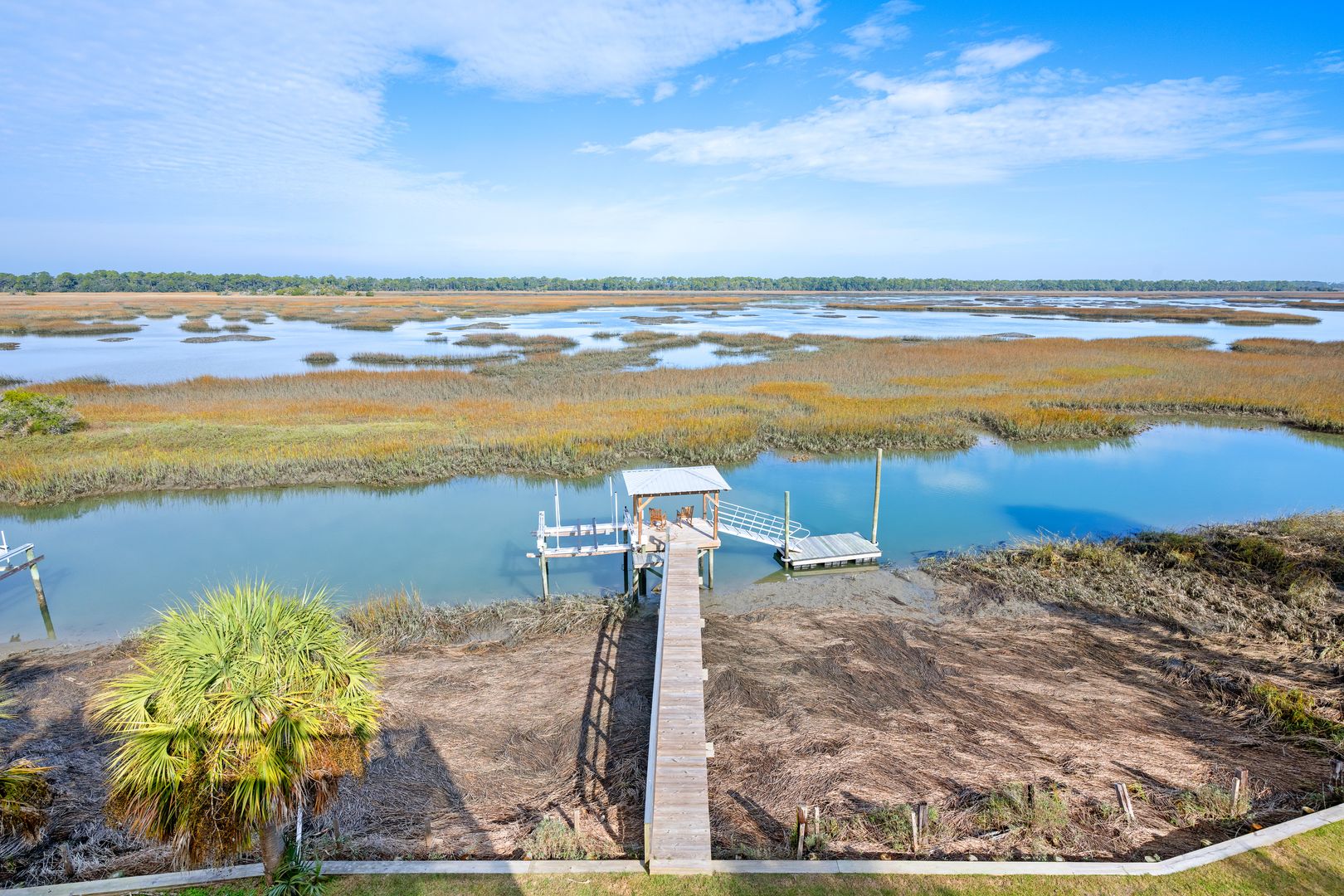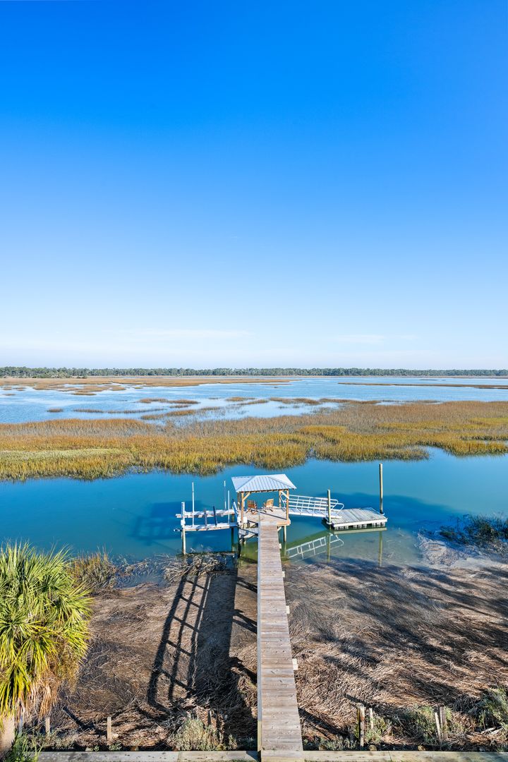 Welcome to The Marsh Crest at Oak Island, where tide meets tranquility. This stunning, brand-new waterfront retreat is perfectly positioned on Oak Island just minutes from the energy of Folly Beach, yet feels worlds away as it overlooks sweeping marsh and water views. Set on the marsh with a private dock, boat lift, yard, and multiple outdoor living spaces, this elevated new-construction home offers an exceptional Lowcountry experience from the moment you arrive. Covered parking sits beneath the home, and an elevator provides easy access to every level.