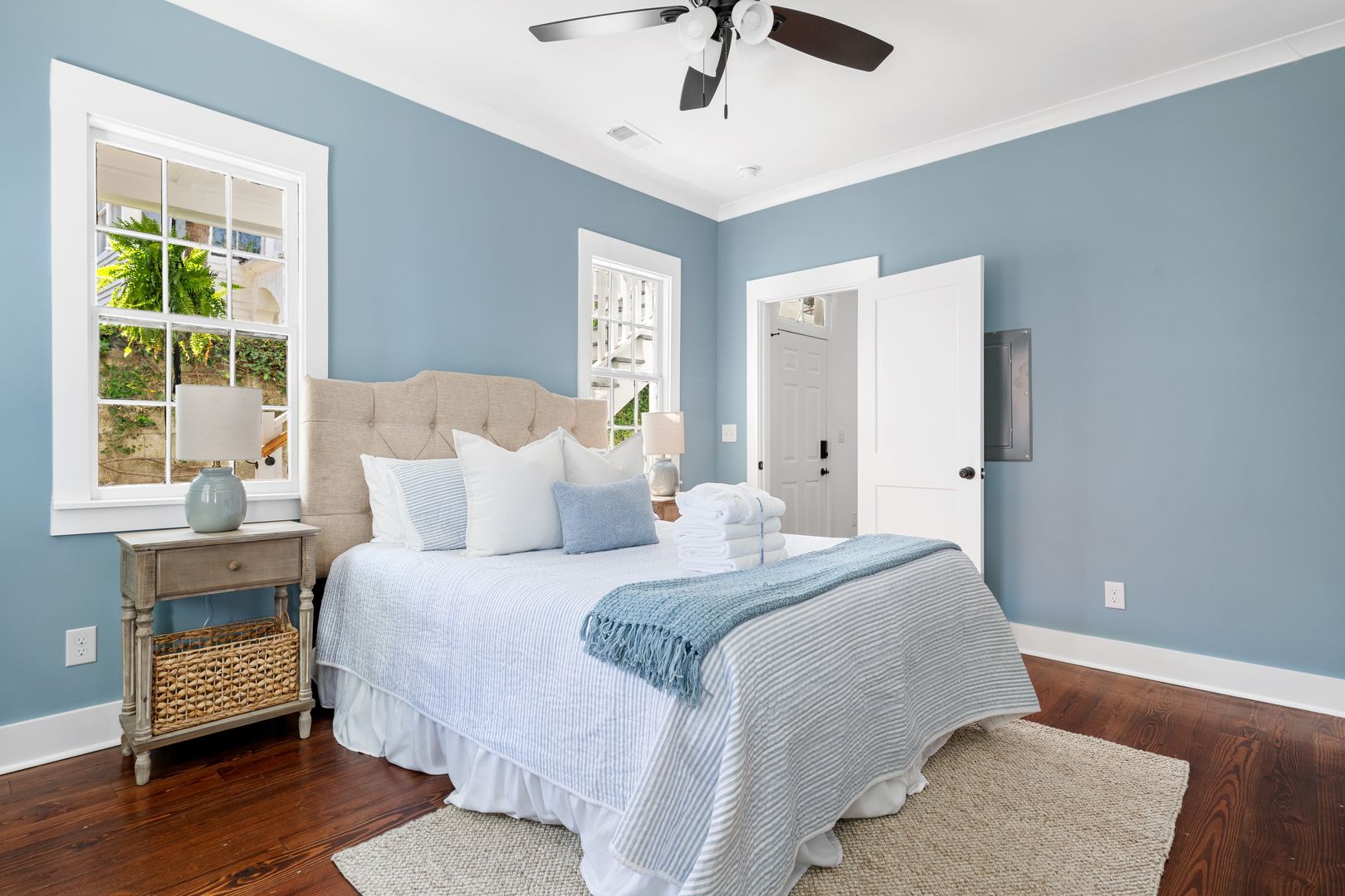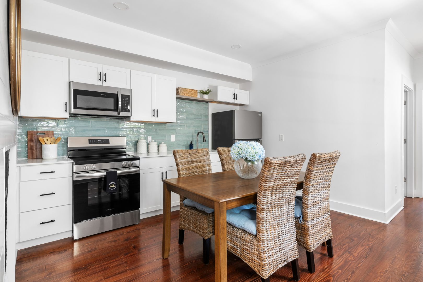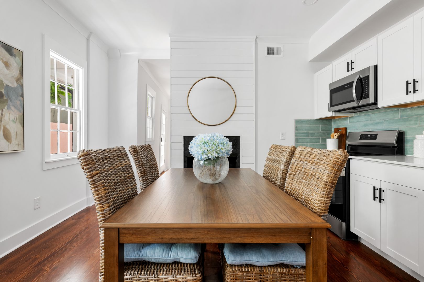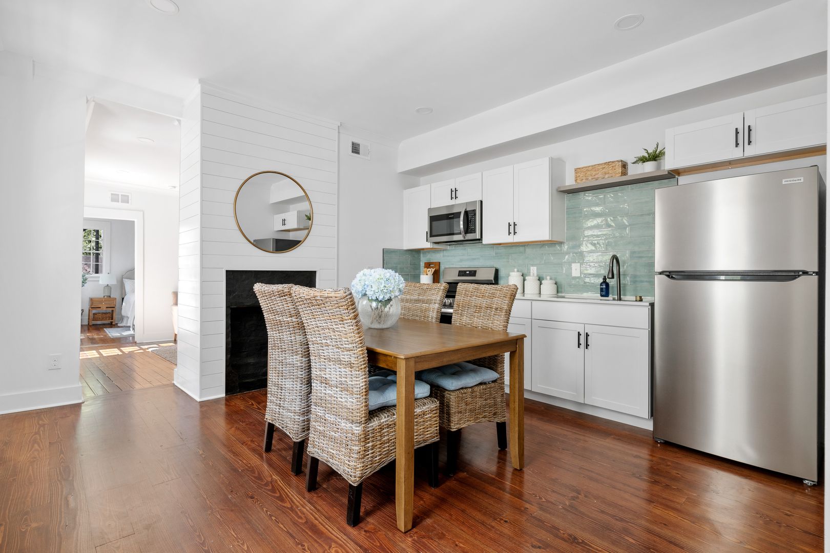 Welcome to The Hummingbird- Camellia Suite, a beautifully renovated two-bedroom, one-bath apartment nestled on the first floor of a fully restored Charleston home. Thoughtfully designed with comfort and style in mind, this furnished suite blends modern finishes with inviting Southern charm.