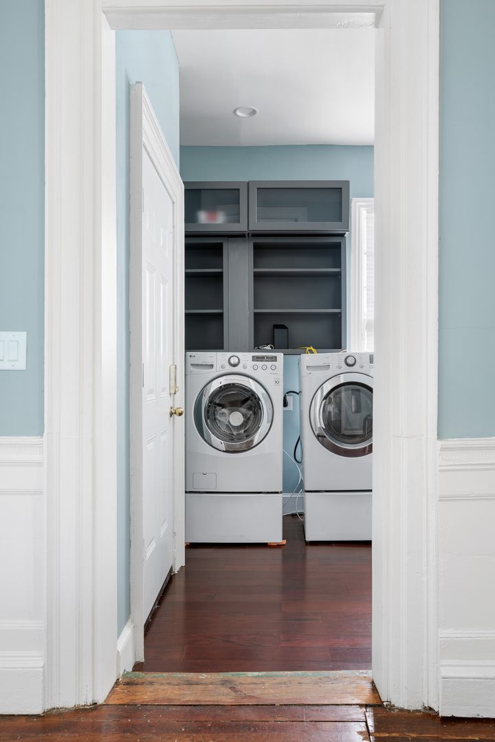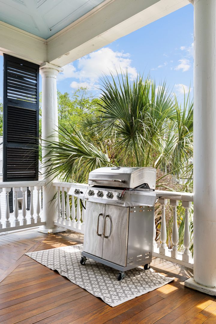 Each of the three bedrooms includes a king-size bed and en suite bathroom, providing privacy and comfort for every guest. Additional amenities include a full-size laundry area, a half bath on the main floor, and access to a private piazza—an ideal spot to enjoy the Charleston breeze.