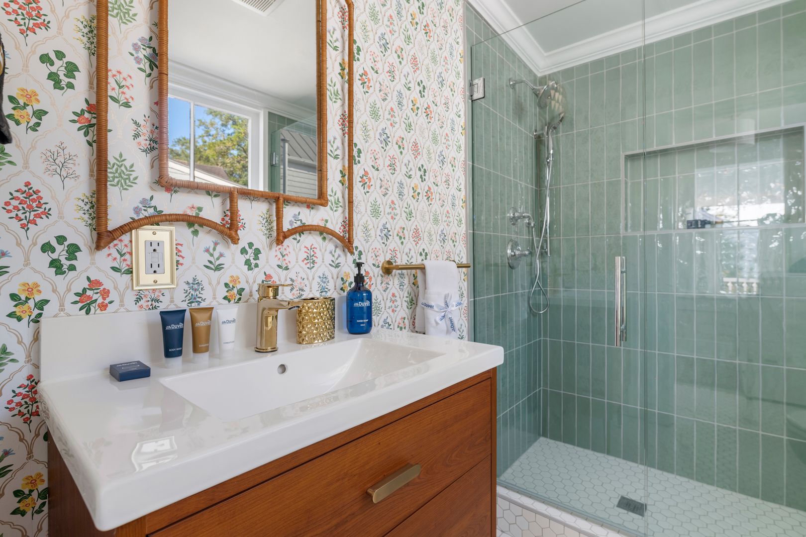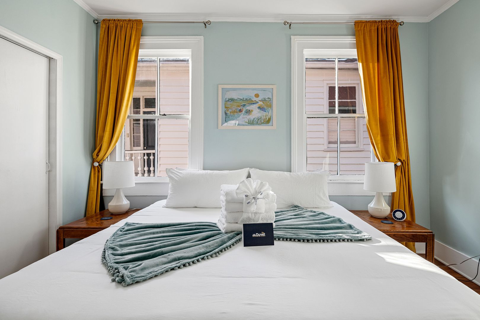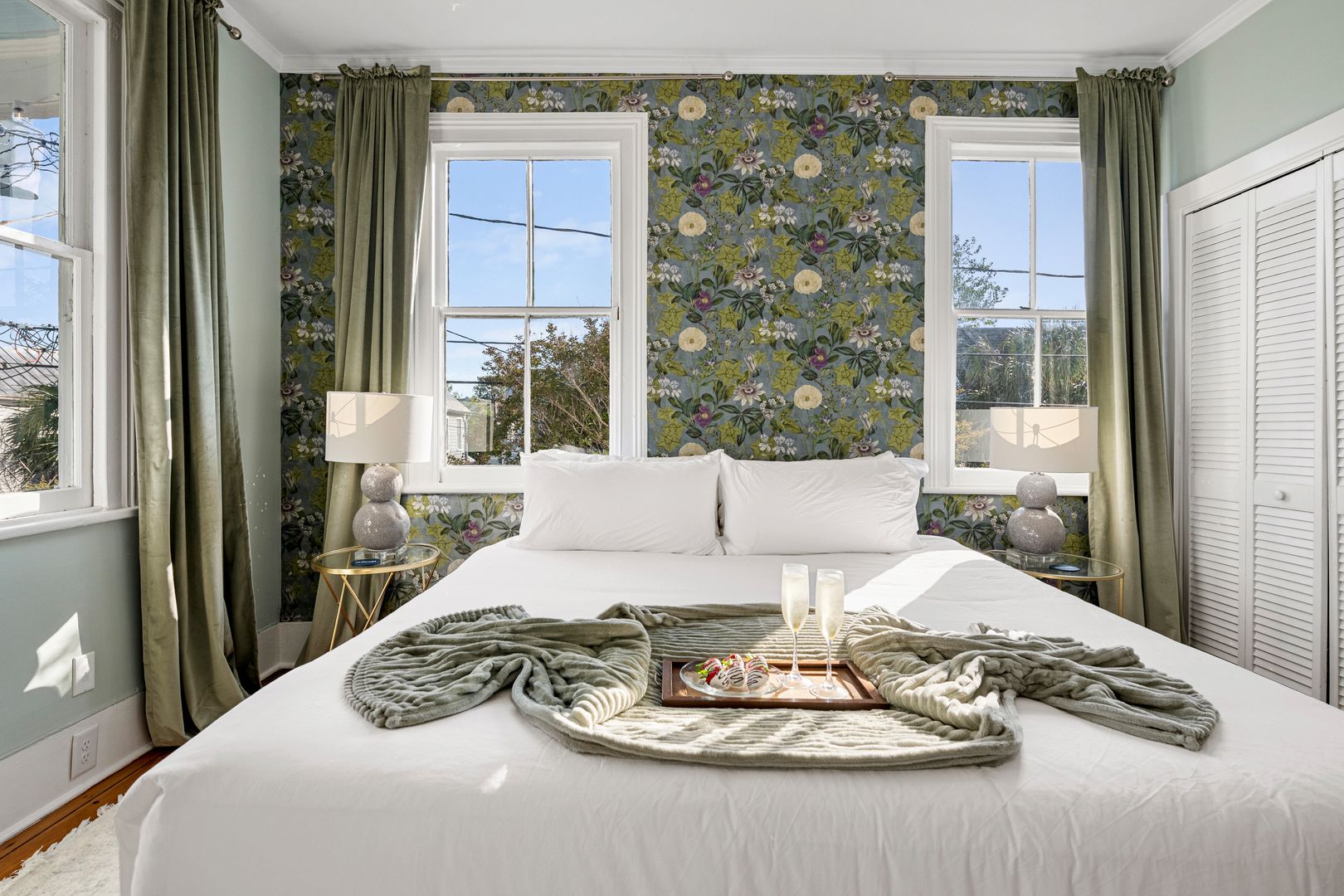 Upstairs, you'll find three additional bedrooms and two full bathrooms. Two bedrooms feature king-size beds, and the third has a queen. The second floor also includes a laundry room with a washer and dryer for your convenience. Each space is thoughtfully designed for both style and function. One off-street parking spot is located in the driveway, and you'll be just steps away from some of Charleston’s best restaurants and bars, including Vern’s, Chubby Fish, and Cannon Green. Whether you're here for work or an extended stay, The Pink Palm offers an authentic Charleston experience with all the comforts of home.