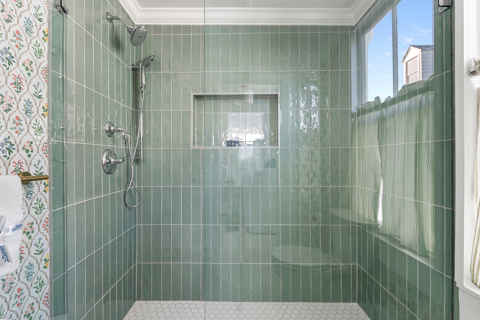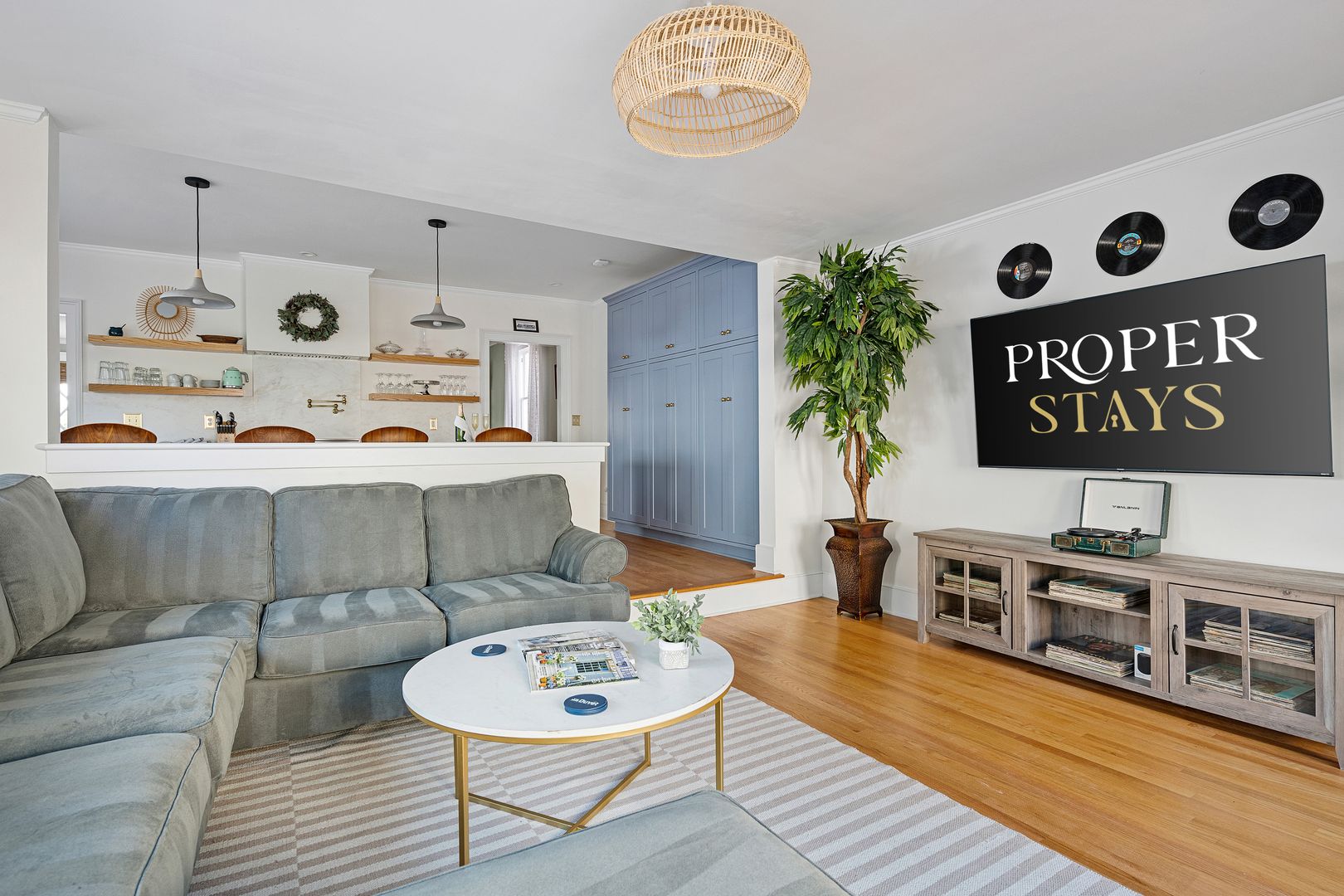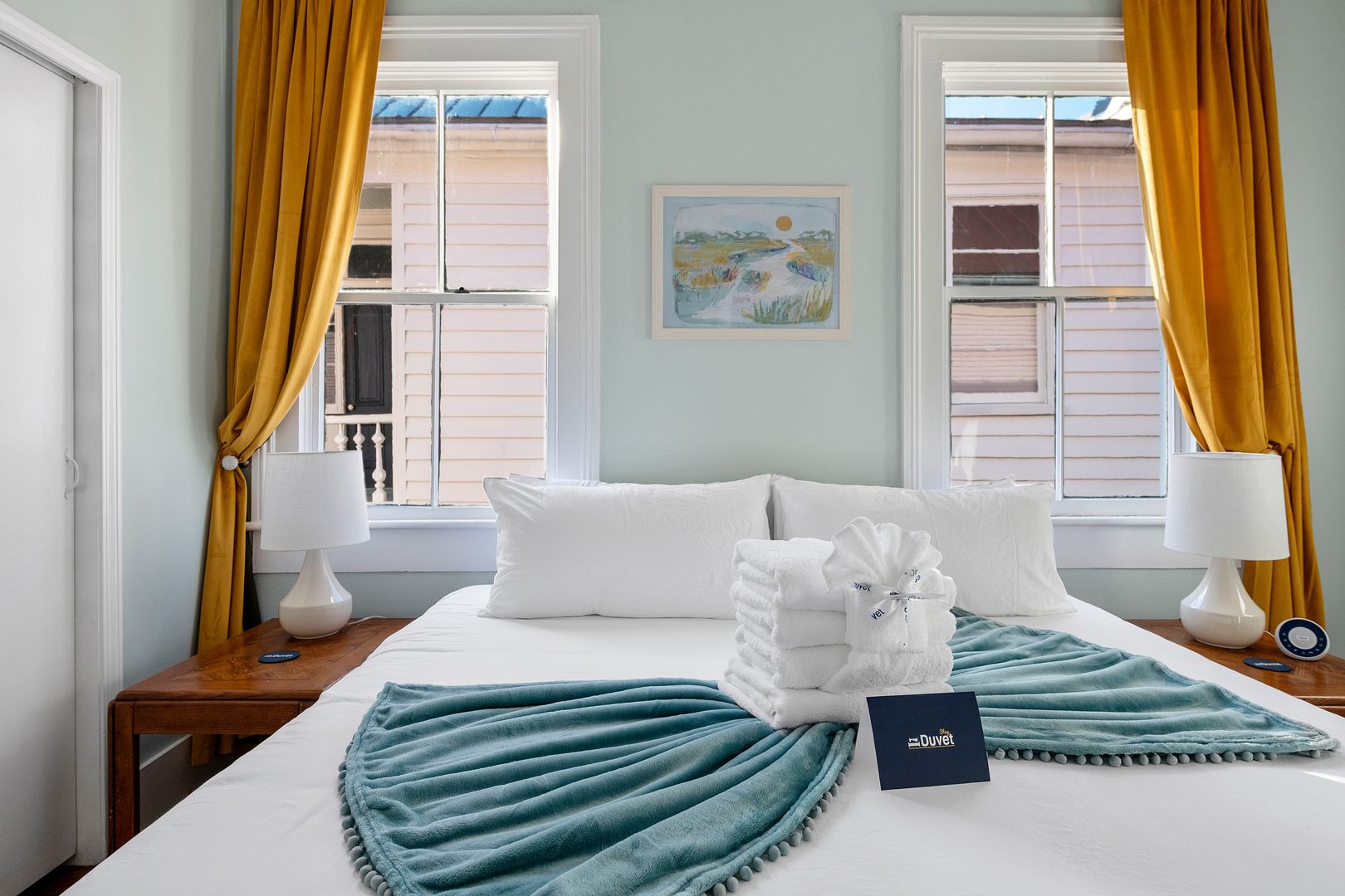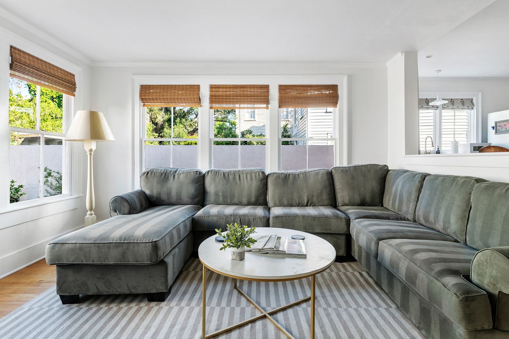 Upstairs, you'll find three additional bedrooms and two full bathrooms. Two bedrooms feature king-size beds, and the third has a queen. The second floor also includes a laundry room with a washer and dryer for your convenience. Each space is thoughtfully designed for both style and function. One off-street parking spot is located in the driveway, and you'll be just steps away from some of Charleston’s best restaurants and bars, including Vern’s, Chubby Fish, and Cannon Green. Whether you're here for work or an extended stay, The Pink Palm offers an authentic Charleston experience with all the comforts of home.