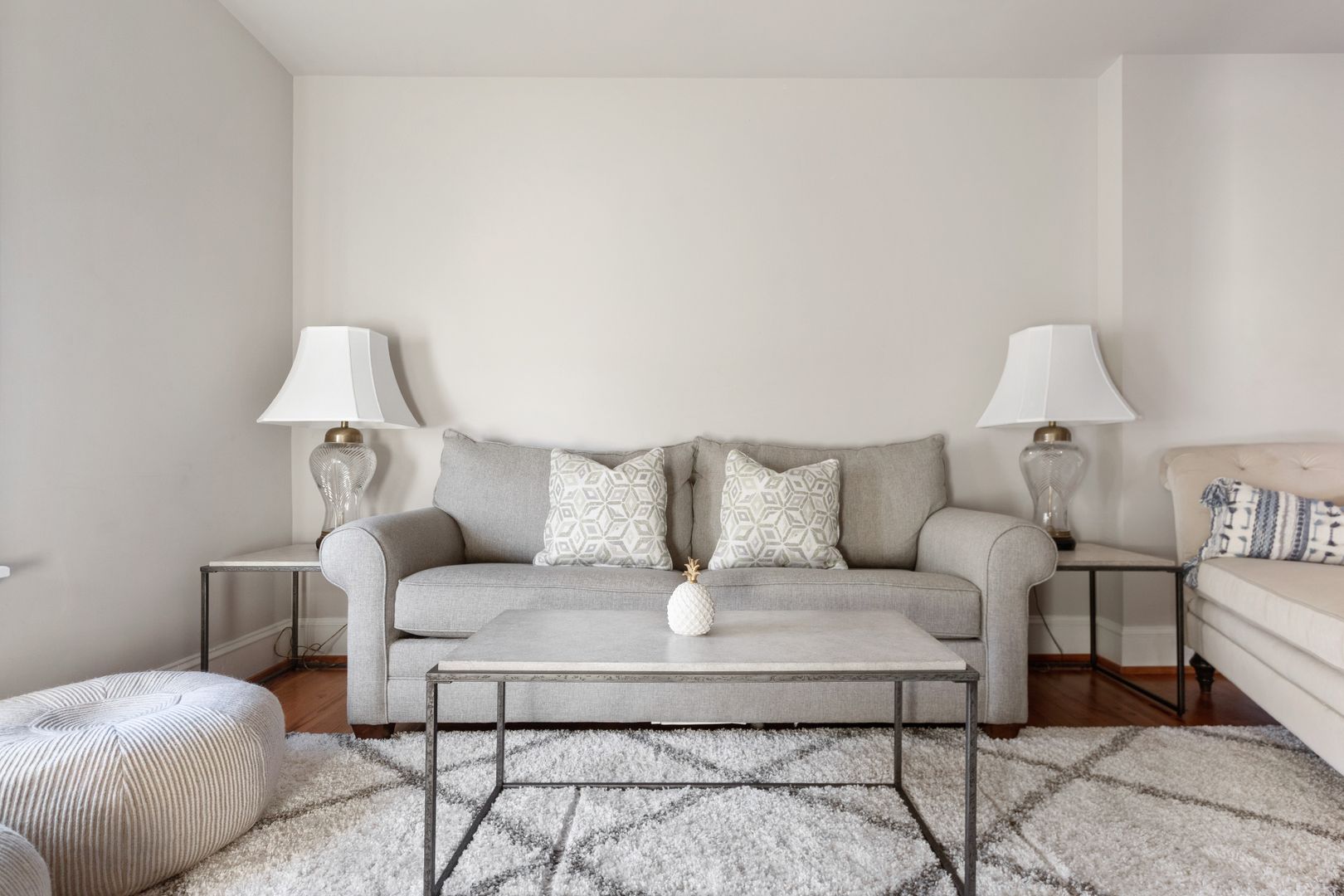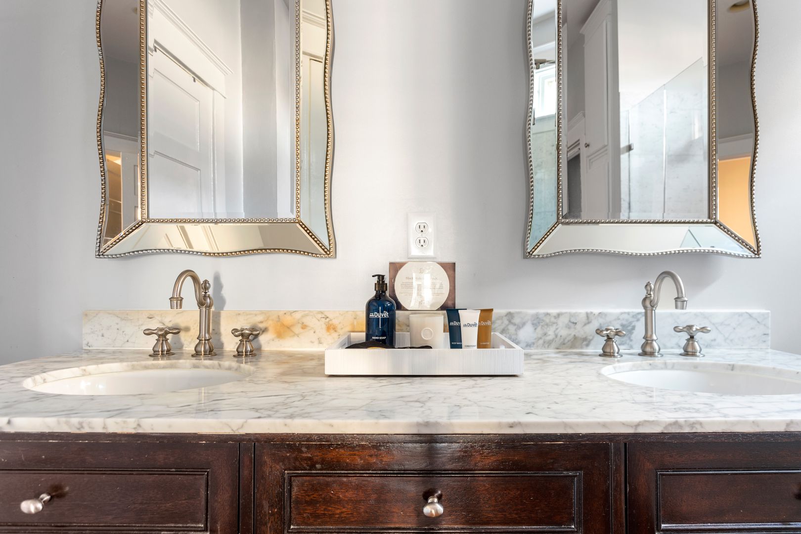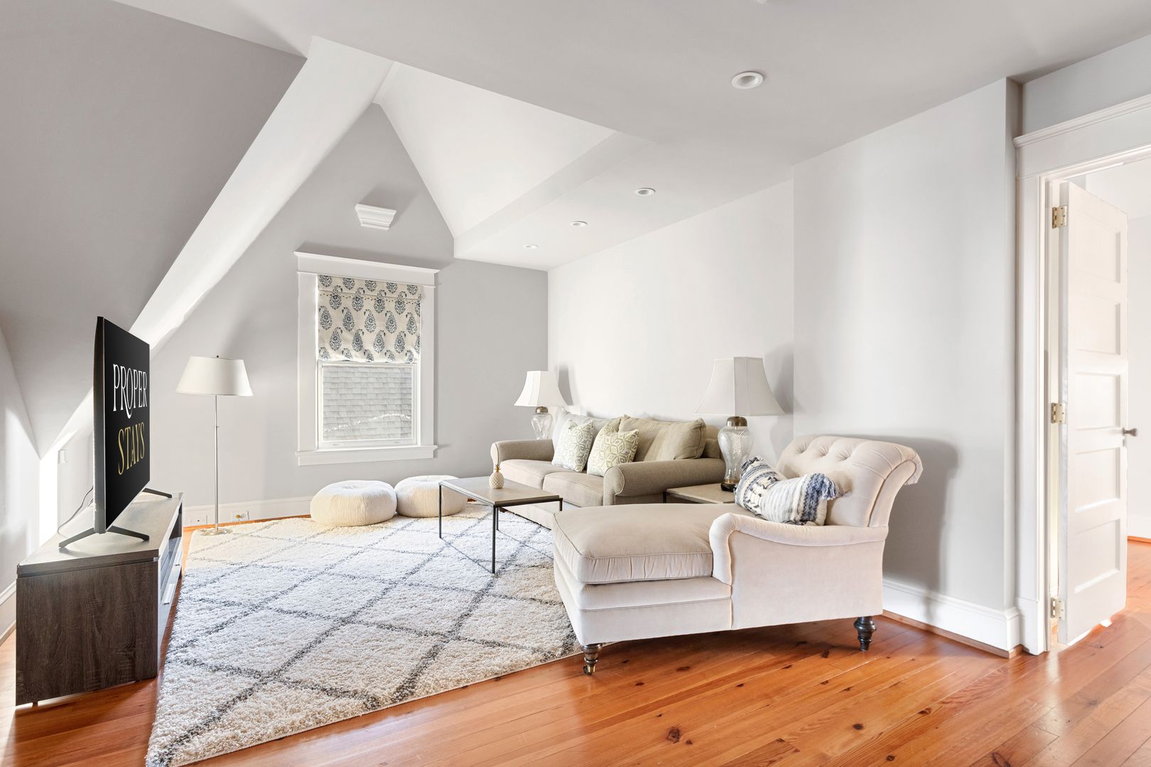 The third floor is the perfect bonus space! You will find another living room with comfortable couch, chaise lounge, and Smart TV, a kitchenette with a Subzero beverage fridge, two wine fridges and a bar sink. The bedroom on this level features two twin beds and a large closet. The adorable full size bathroom has a claw foot tub, standalone Carrera marble shower with Grohe shower head, Carrera marble sink and dressing vanity. The other room on this level has been turned into a home office, perfect for all of your work from home needs!