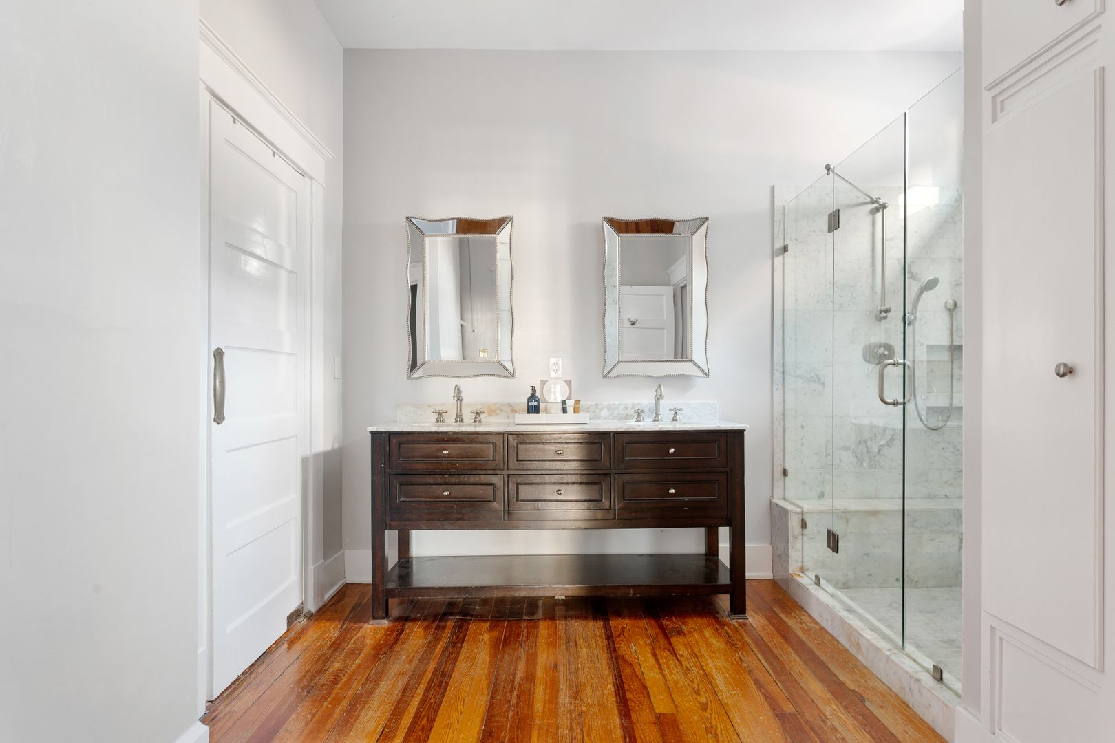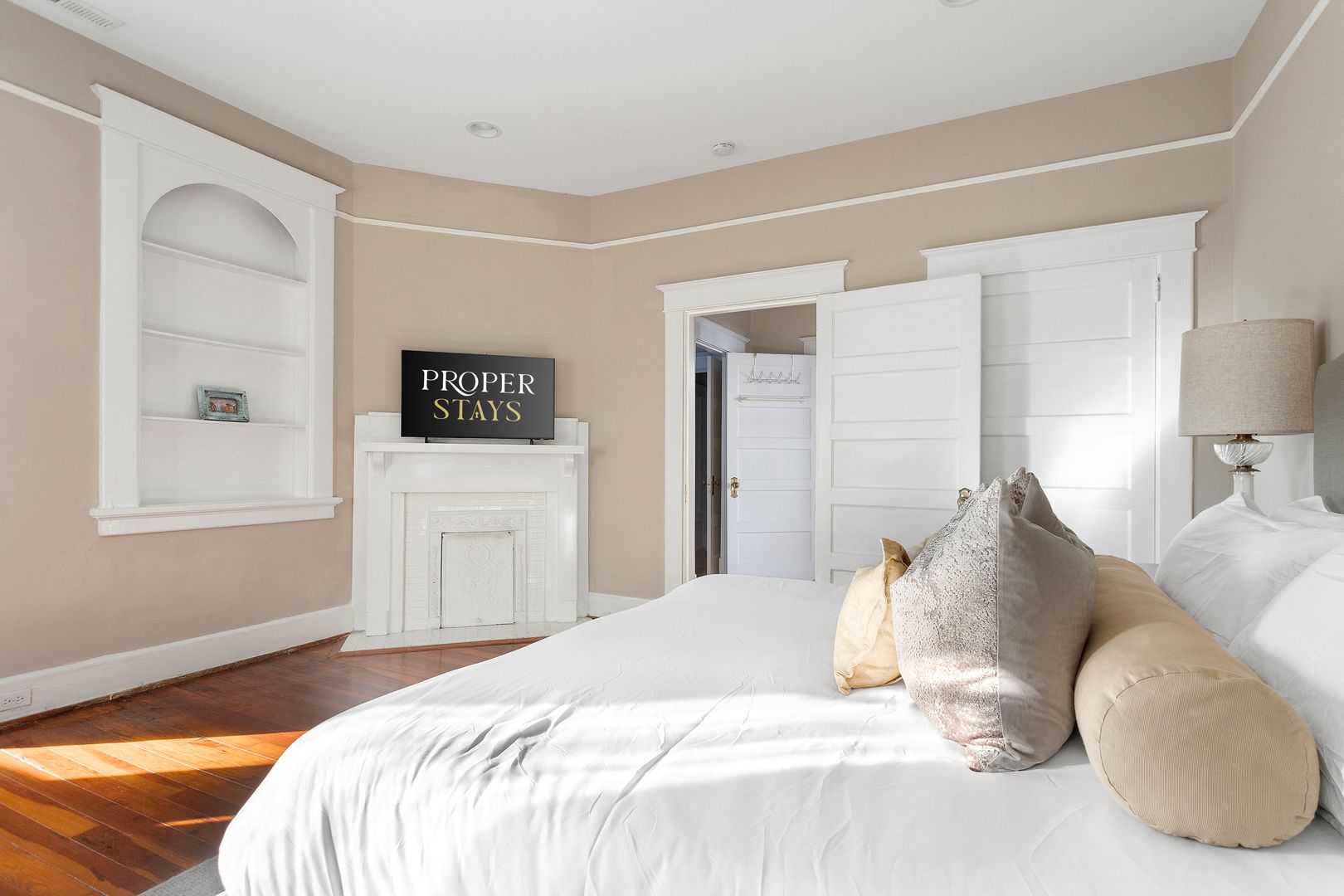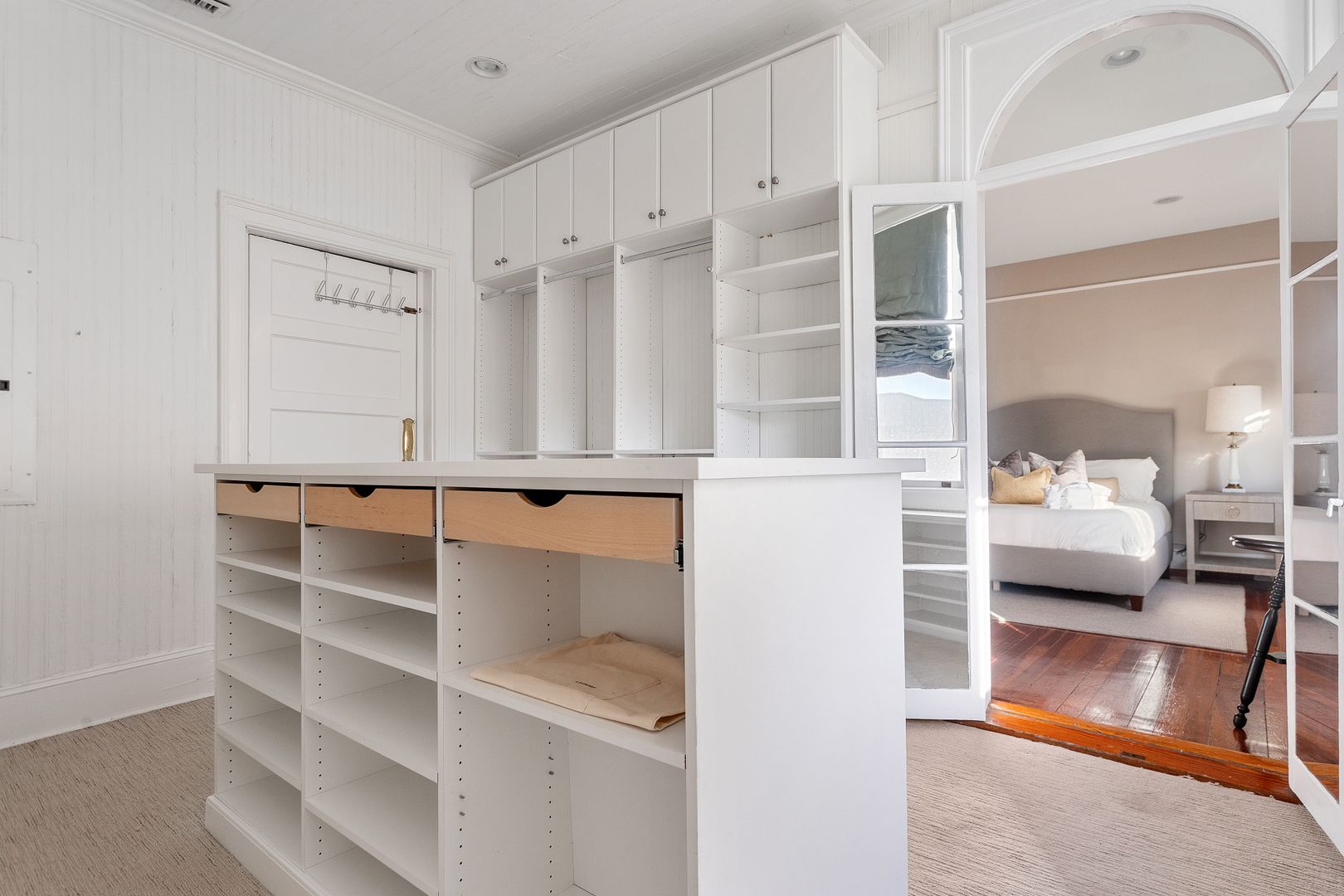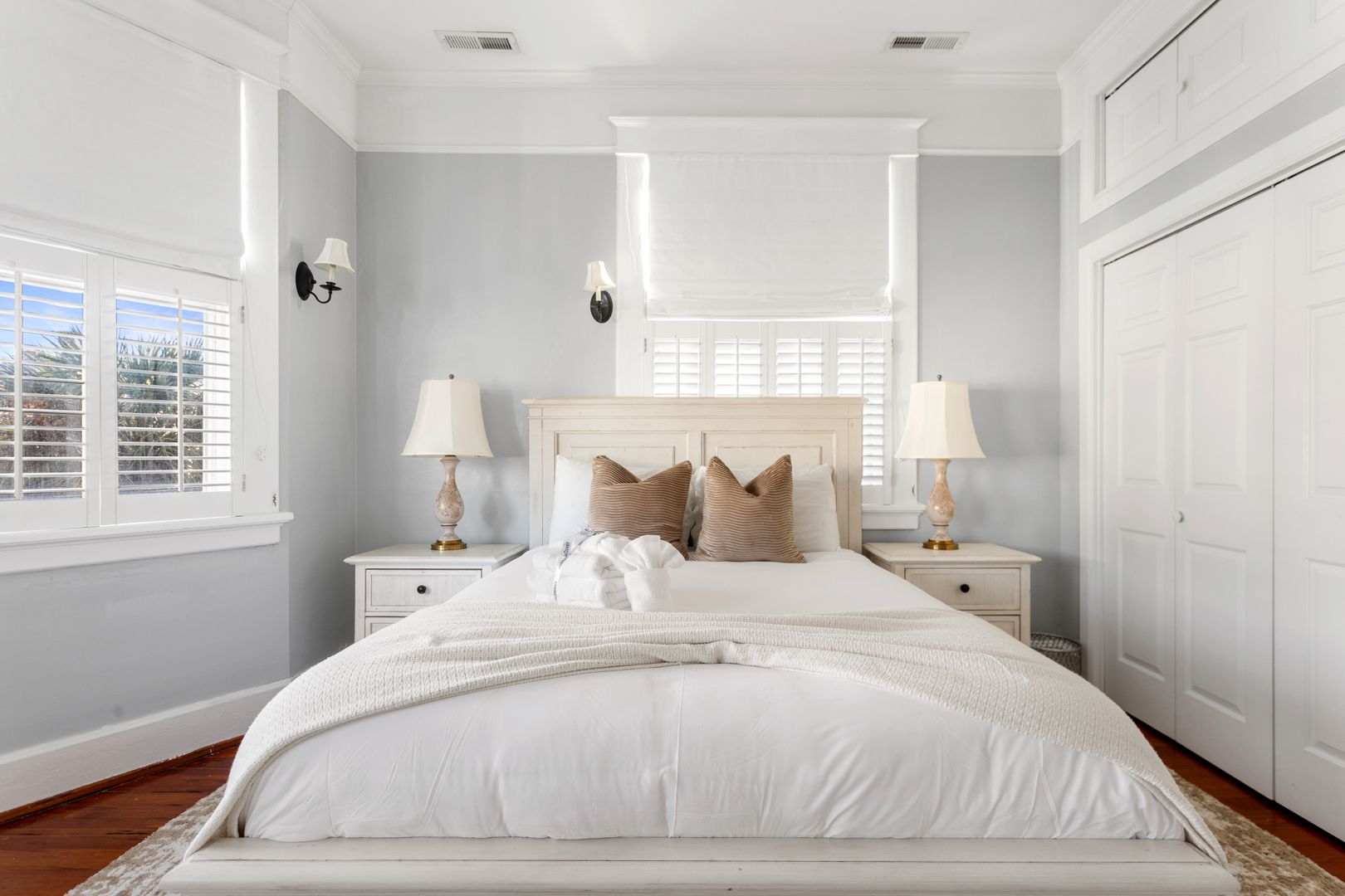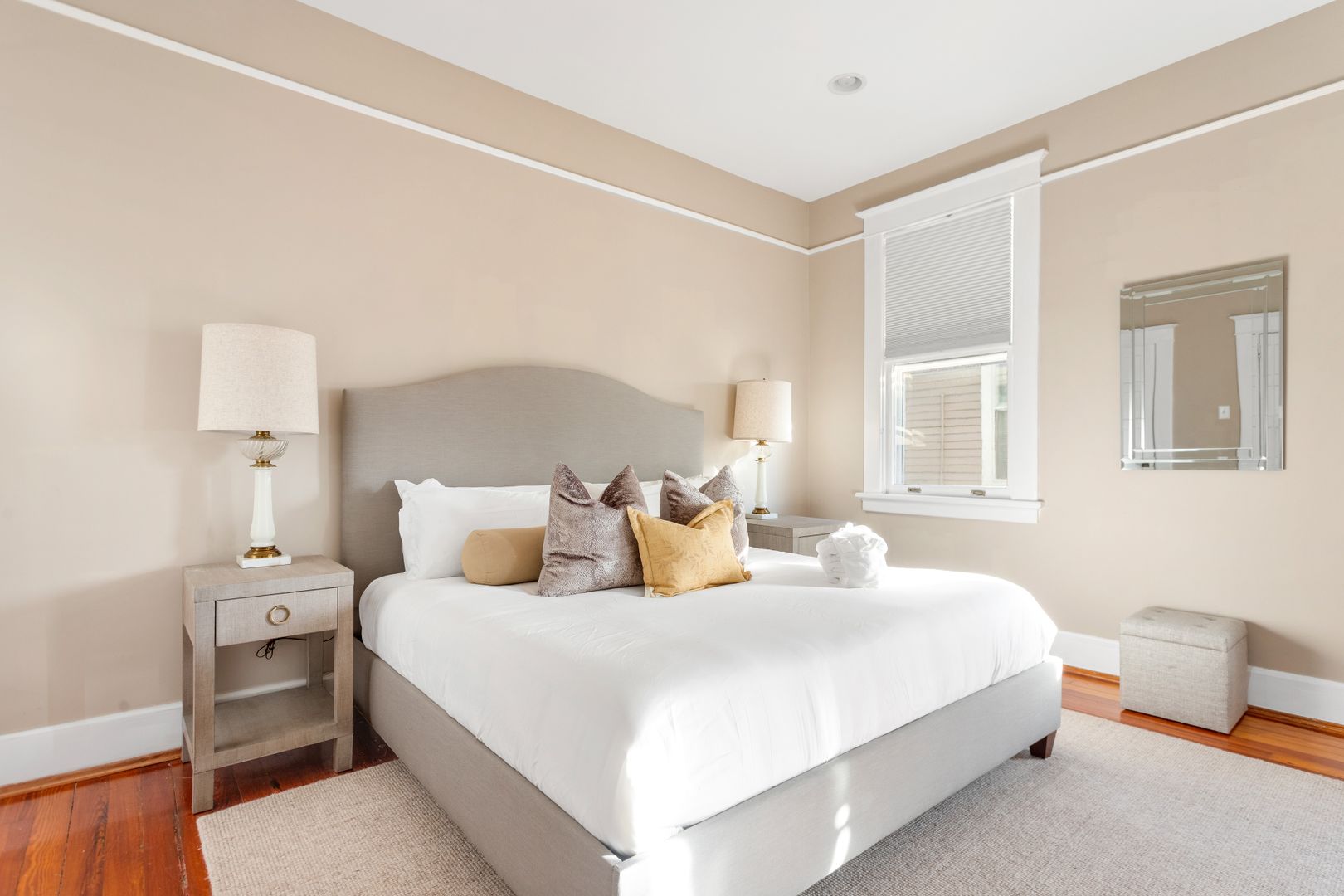 The Owners Suite is truly an amazing feature of the house and is located on second floor. It features a luxurious king sized bed, Smart TV, and a large walk-in closet with a high end organizational system. The spacious spa like bath features an oversized Carrera marble shower with Grohe dual shower heads and jets, separate water closet, and dual sinks with Carrera marble countertops. The additional second floor bedroom has loads of natural light and features a queen sized bed, California closet organizational system and a full bath.