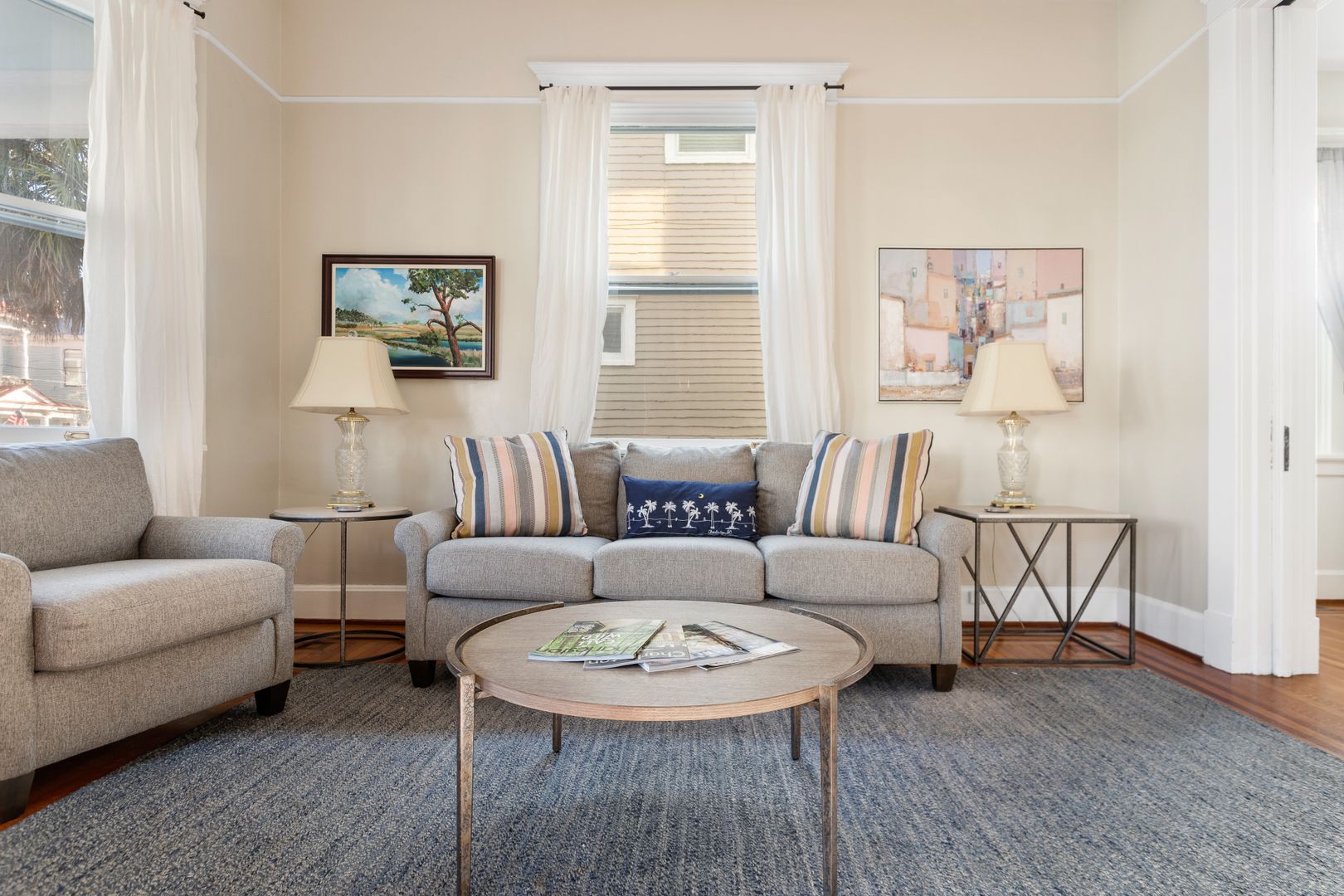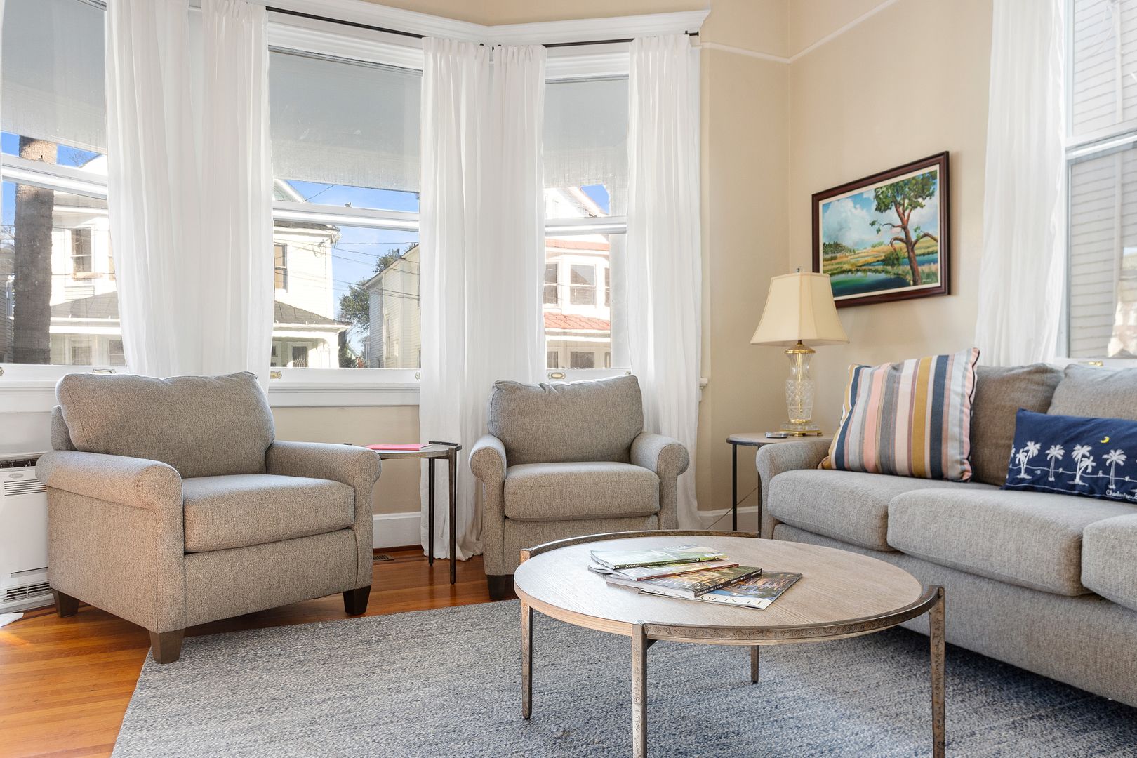 Colonial Street is a neighborhood street and walking distance to downtown schools, parks and tennis courts and Colonial Lake, Moultrie Park and Playground, Murray Boulevard, Horse Lot and the Ashley River. The lively area South of Broad is known for the 19th-century Rainbow Row, with restored, pastel townhouses that are popular for photo-taking. Italianate 1800s landmarks include the chandelier-filled Calhoun Mansion and the Nathaniel Russell House, with a “free-flying” staircase. On the peninsula's tip, mature oak trees, Civil War cannons and monuments fill White Point Garden. Antique stores dot nearby King Street.