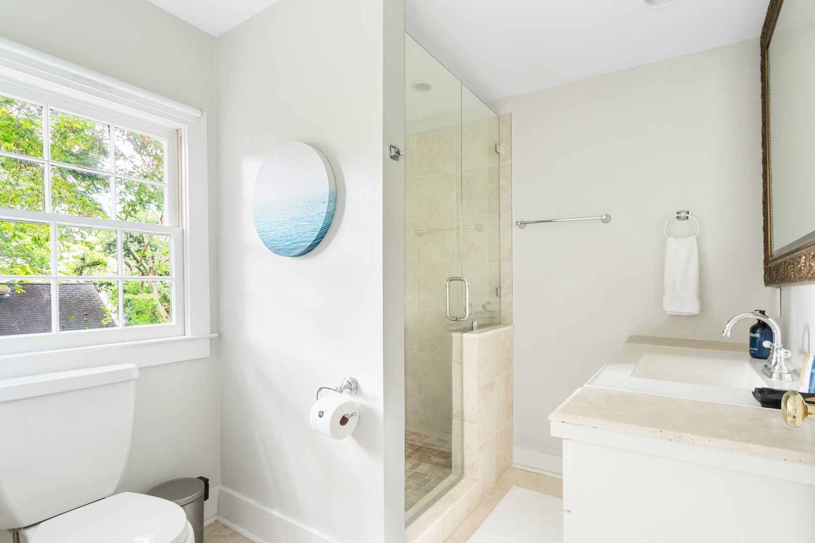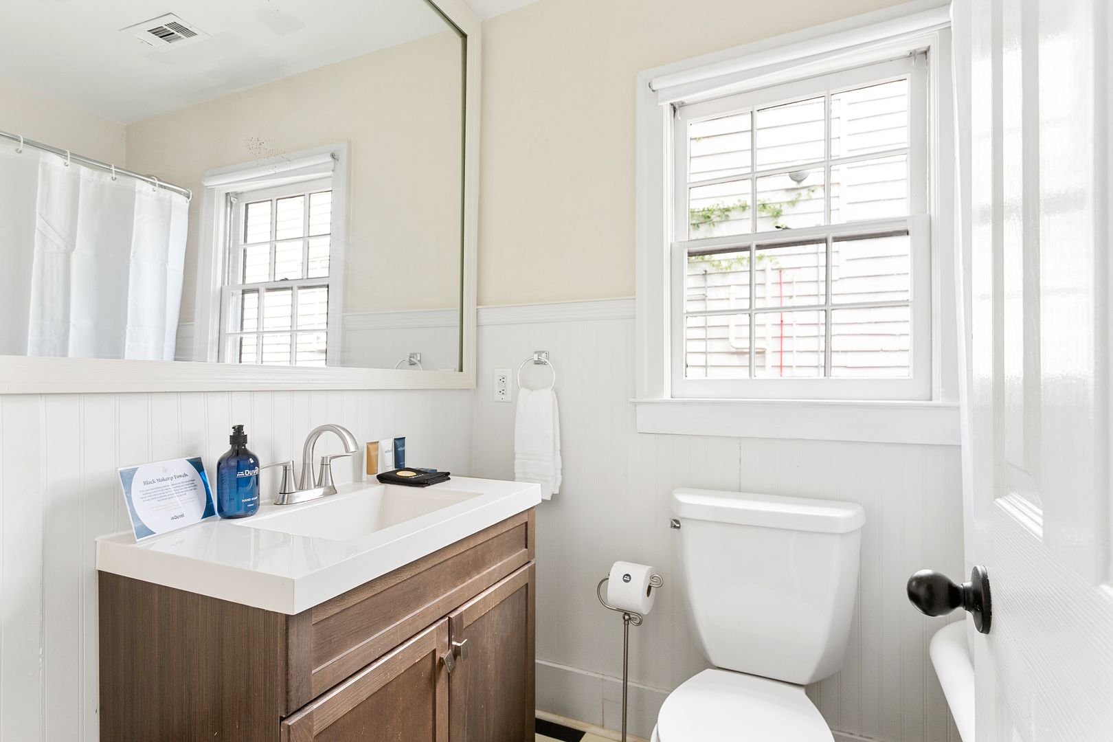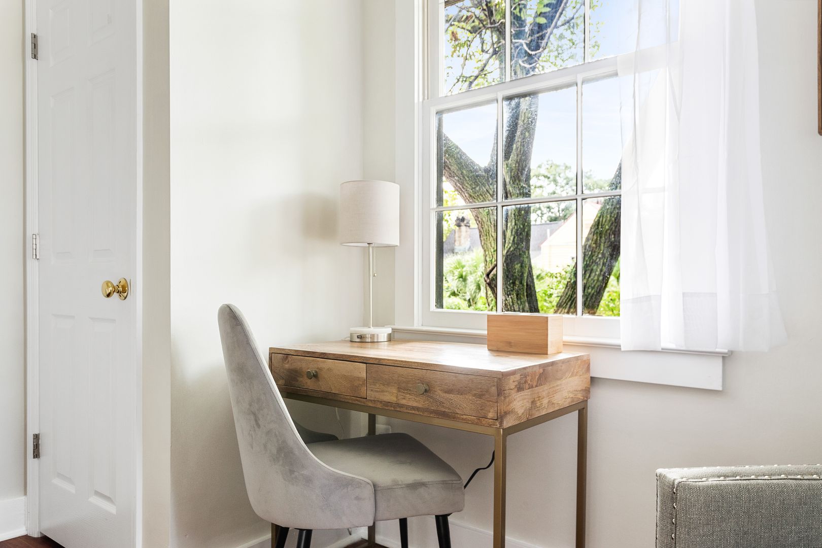 The two piazzas and large backyard allow you the opportunity to enjoy the beautiful Charleston weather! The second floor piazza has a spacious seating area and a swinging bench and the backyard has a dining table, grill, and Adirondack chairs.