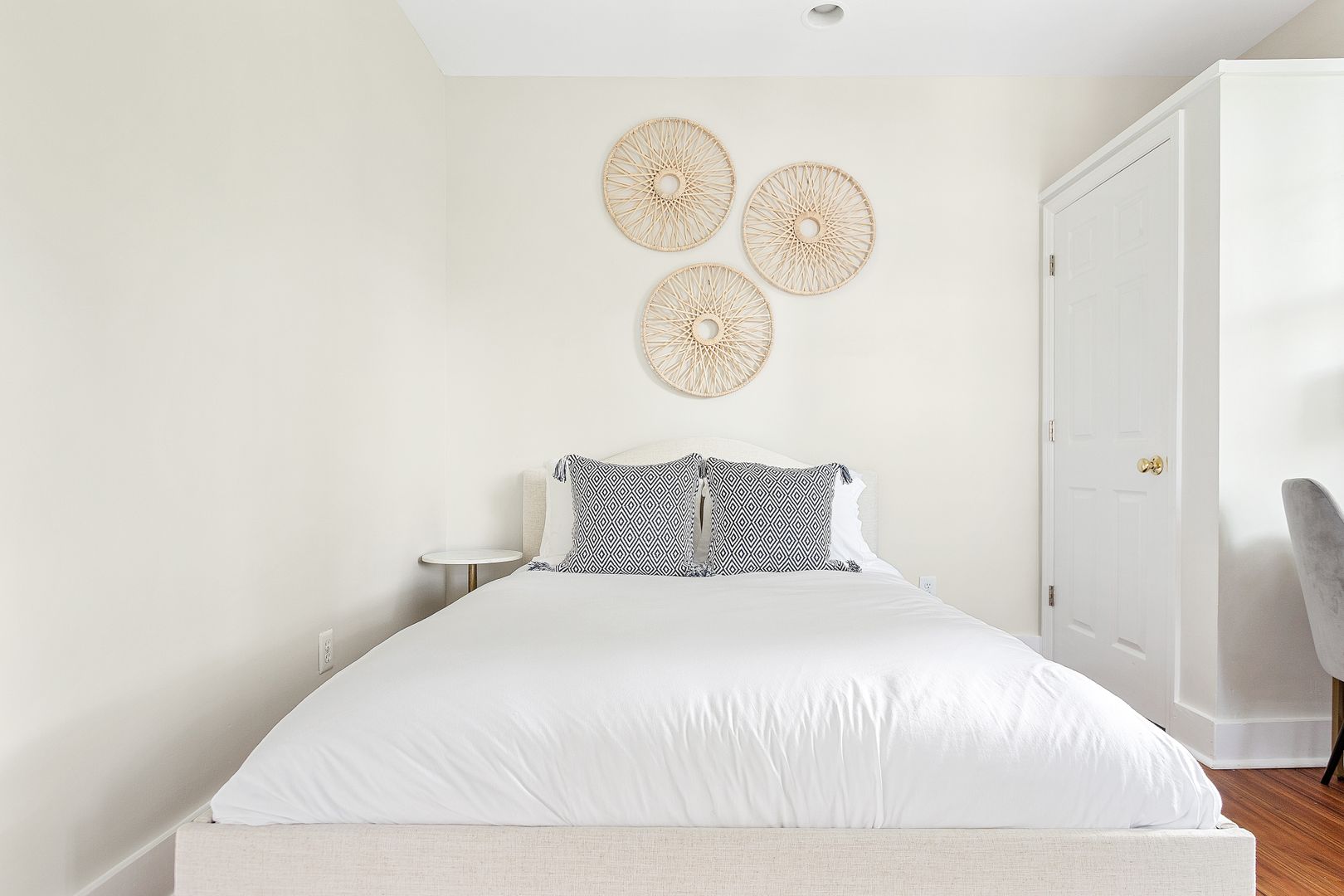 The remaining three bedrooms are on the second floor. These include one room with a King size bed, and two rooms with queen beds. There is a small full bathroom off of the room with the King size bed, and a large full bathroom in the hallway just outside the other two bedrooms. Both of these rooms also have desks to accommodate all of your work from home needs! The washer/dryer are also located on this level for your convenience!